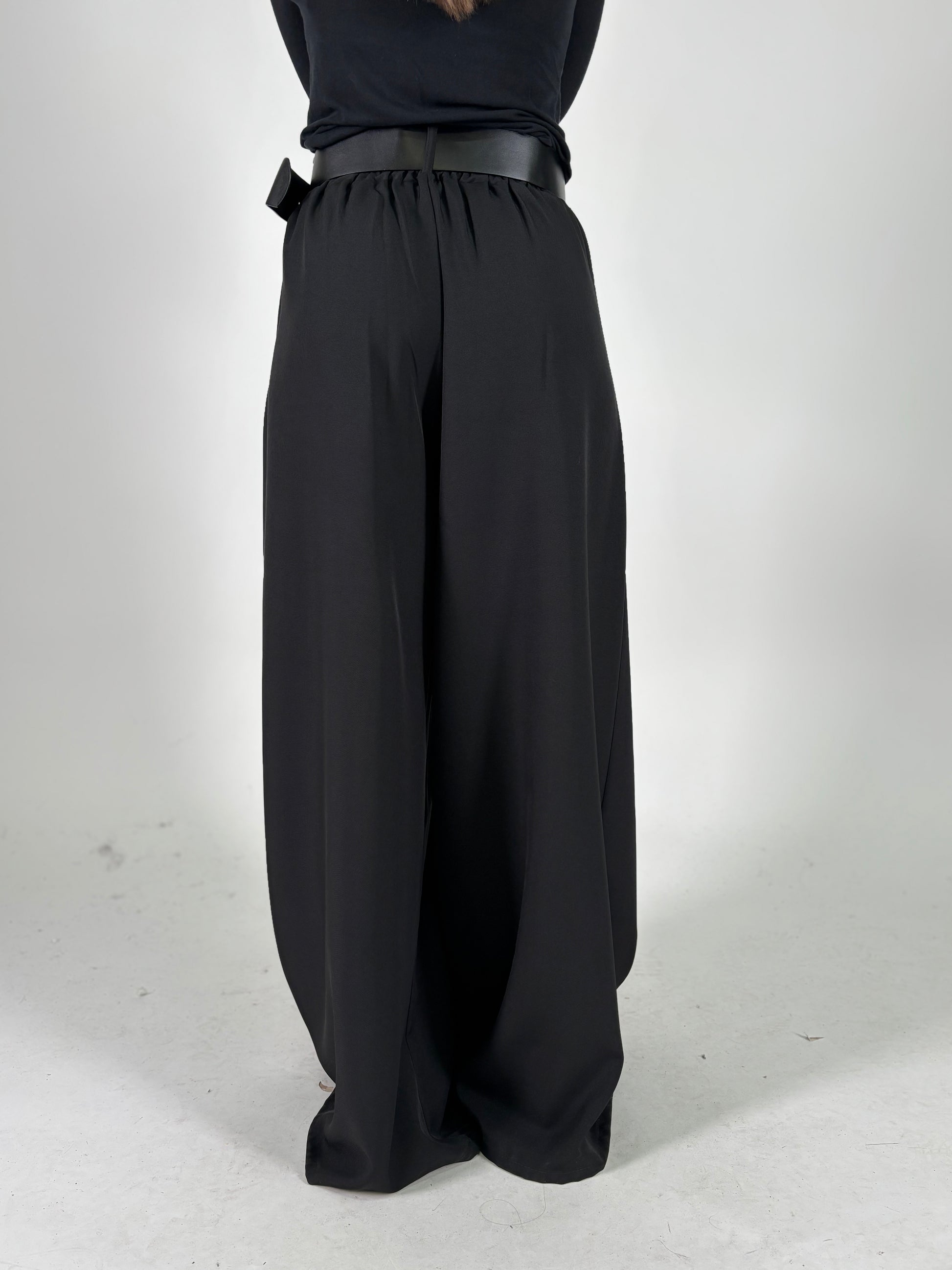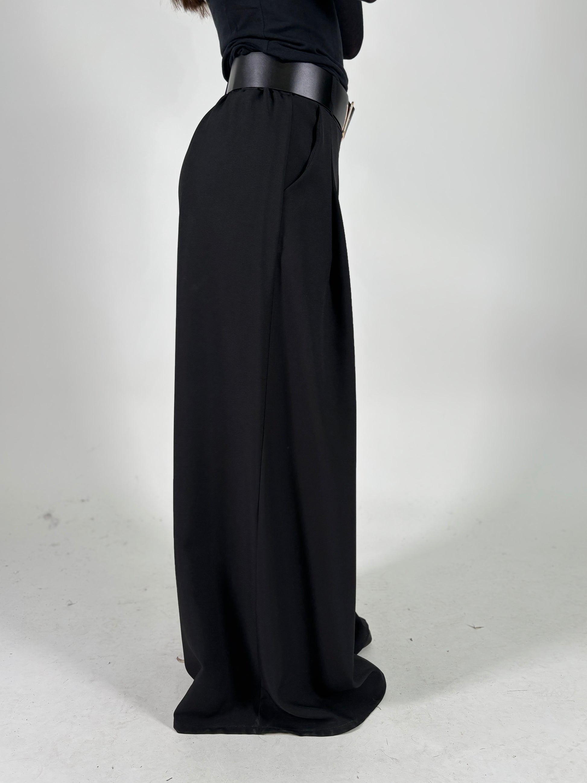 Aglaea Pantalone palazzo con doppia pince+cintura NERO