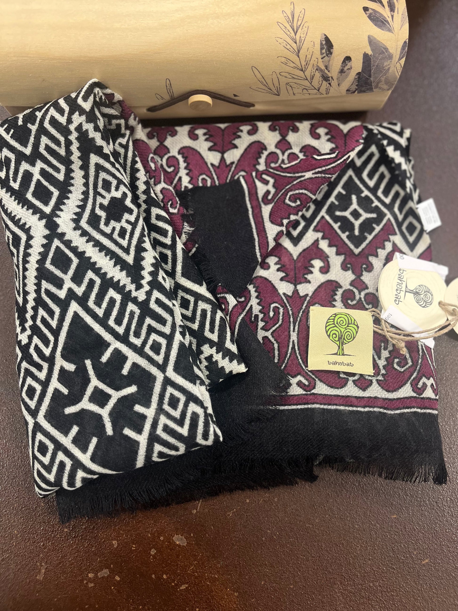 Bahobab Sciarpa 100% lana fantasia geometrica BIANCO/NERO/BORDEAUX
