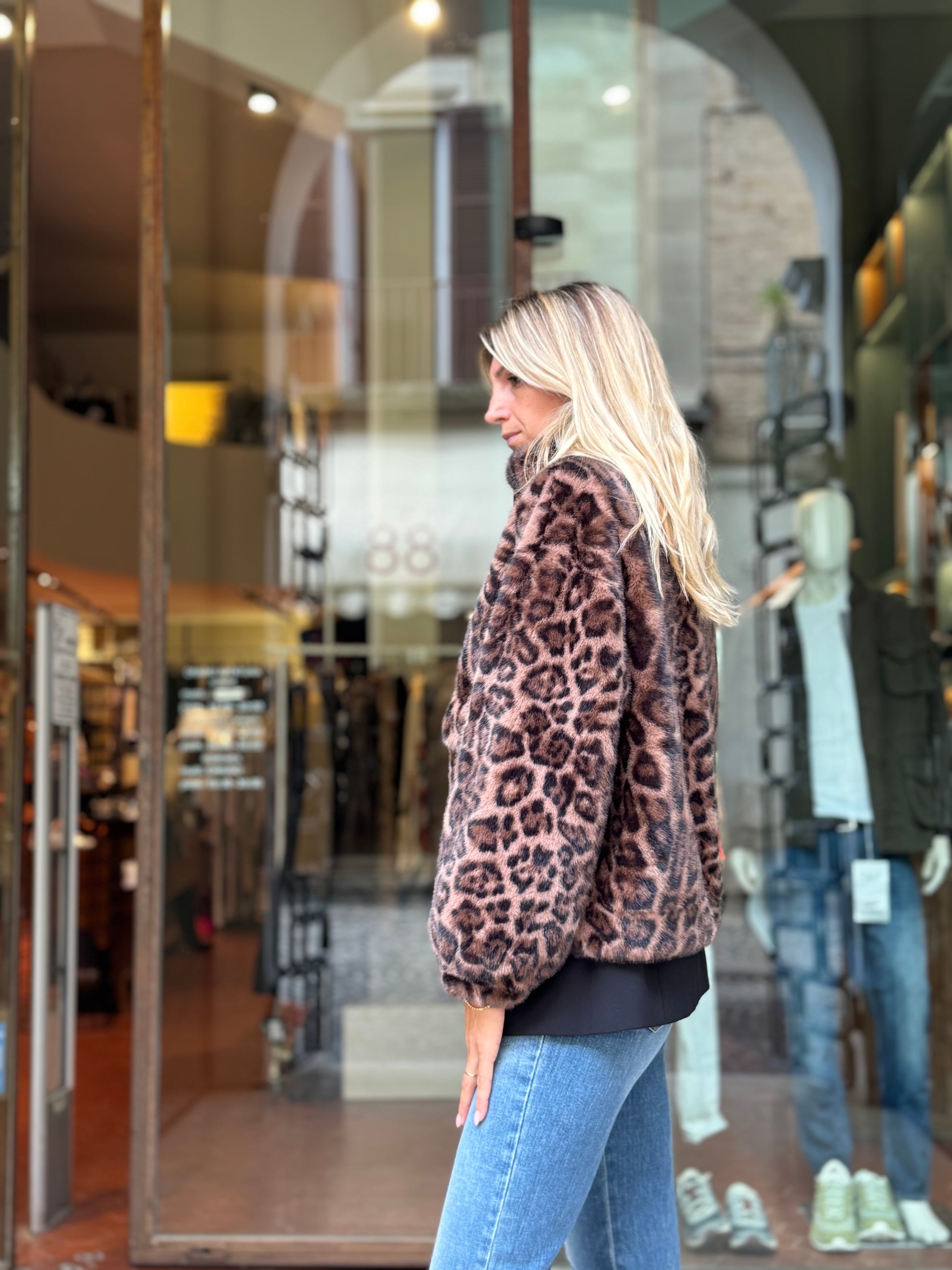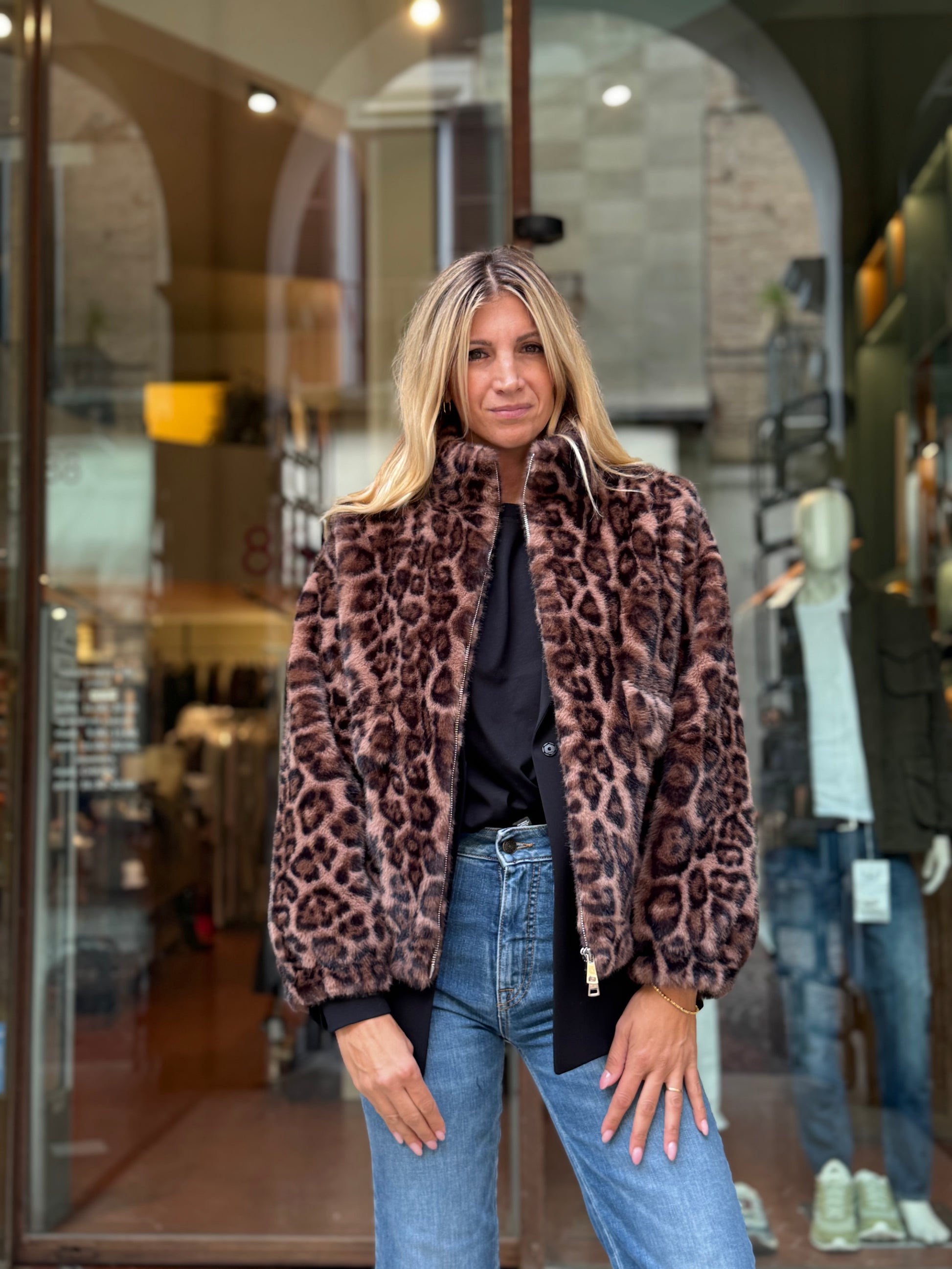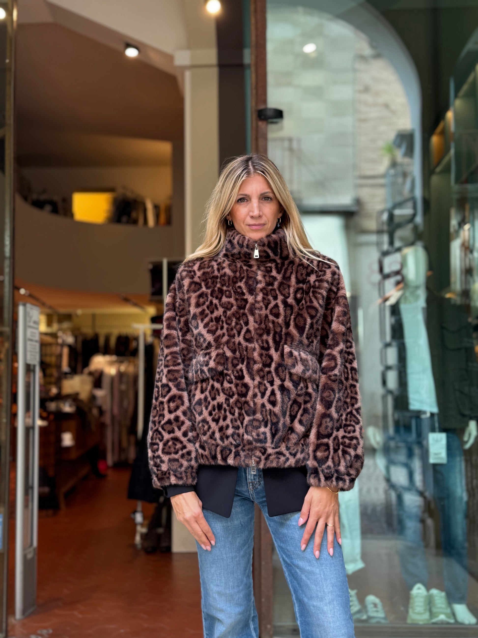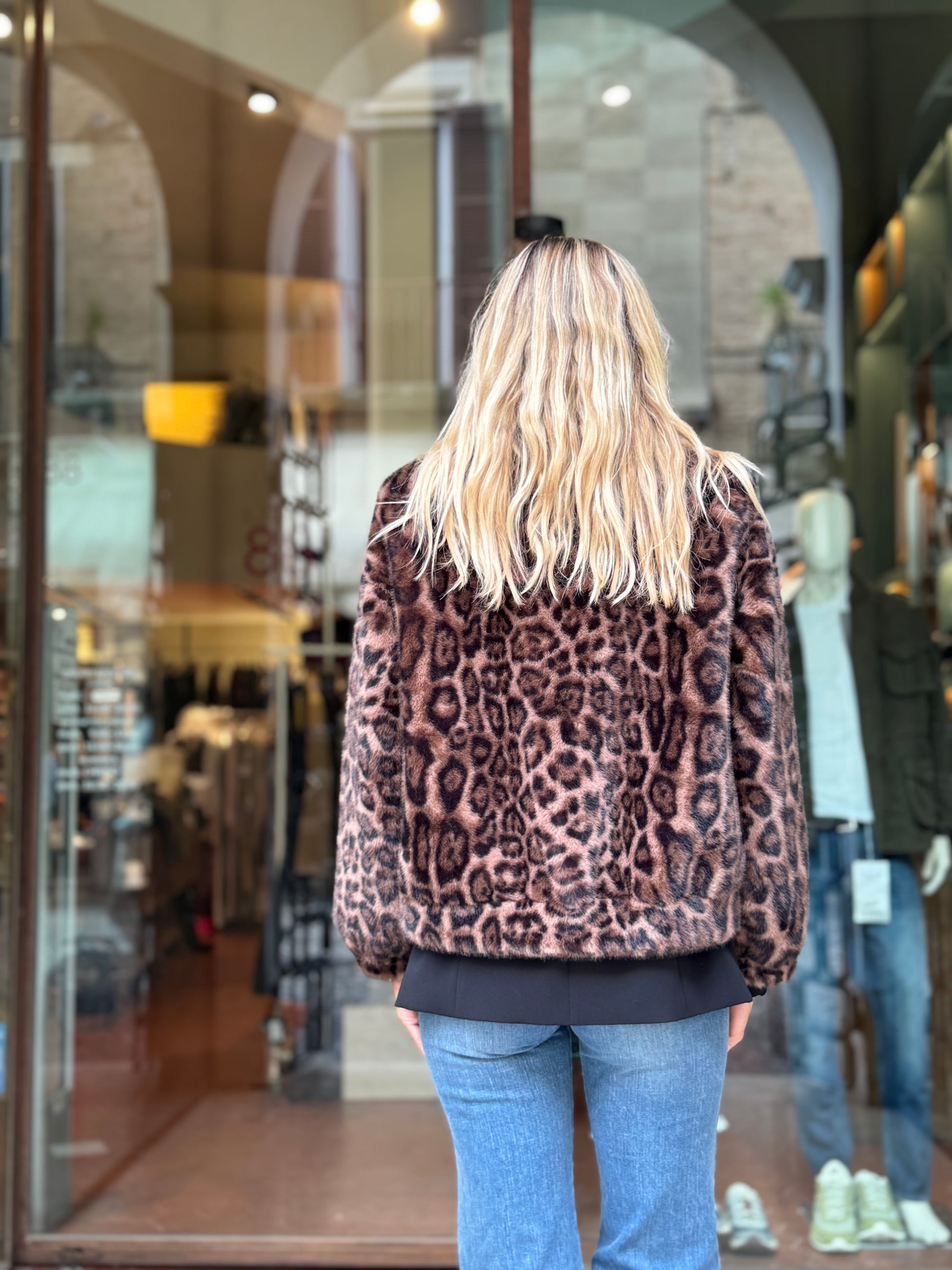 Betta Corradi Ecopelliccia modello bomber MACULATO