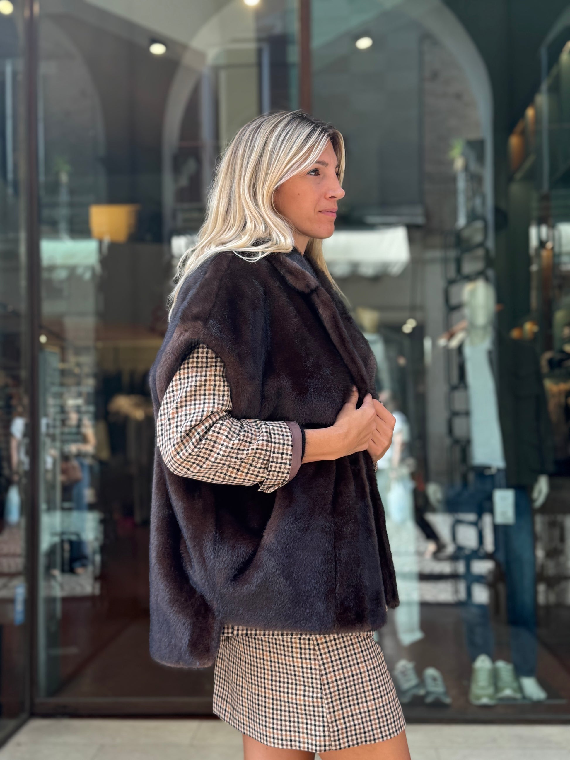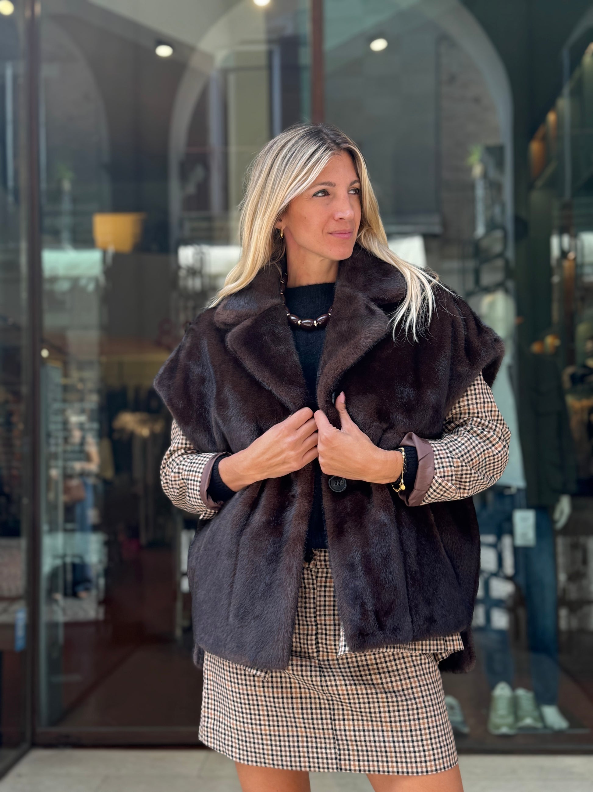 Betta Corradi Ecopelliccia smanicata a due bottoni MARRONE