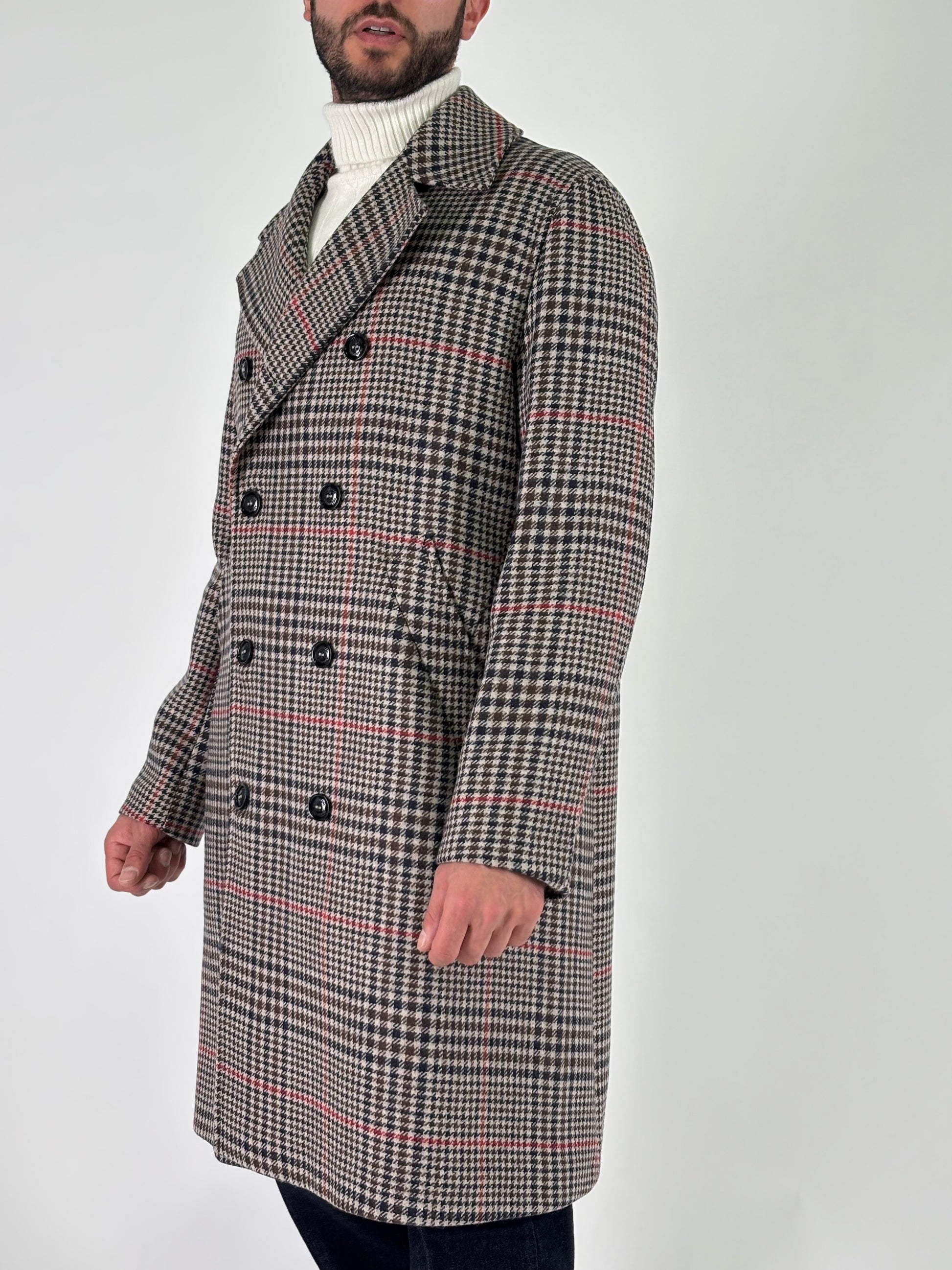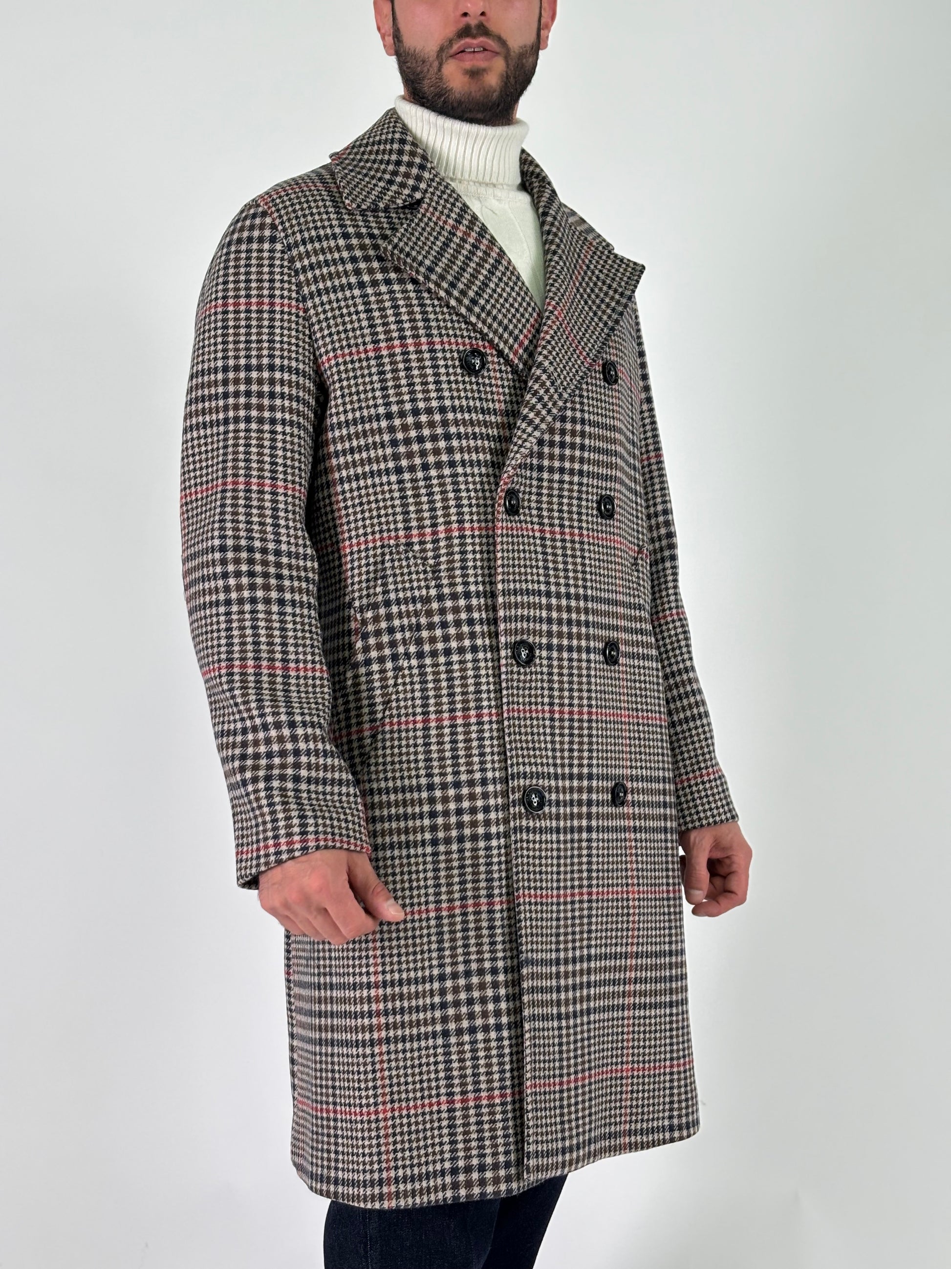 Bharnaba cappotto doppiopetto over scacchi BEIGE BLU ROSSO