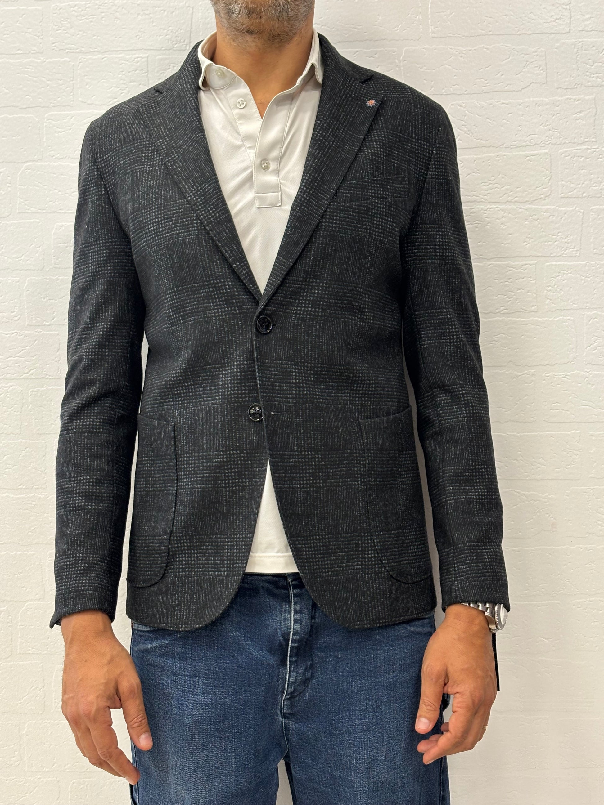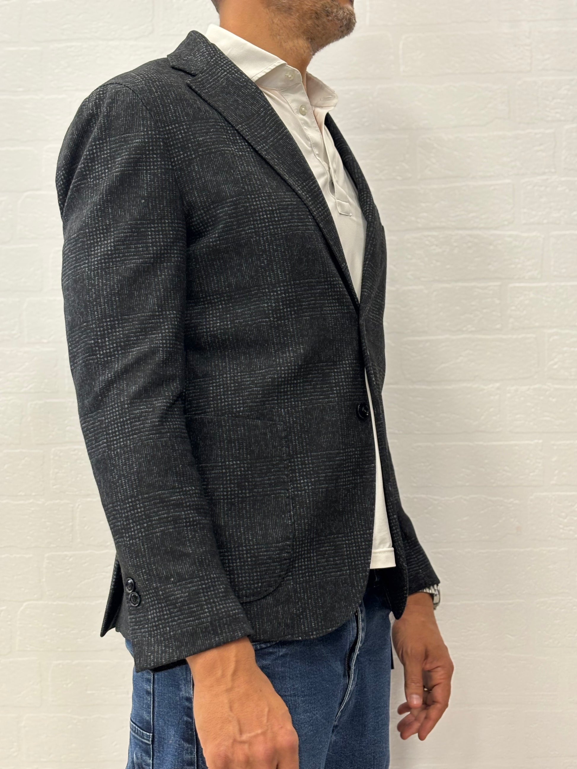 Bharnaba giacca in jersey scacchi BLU