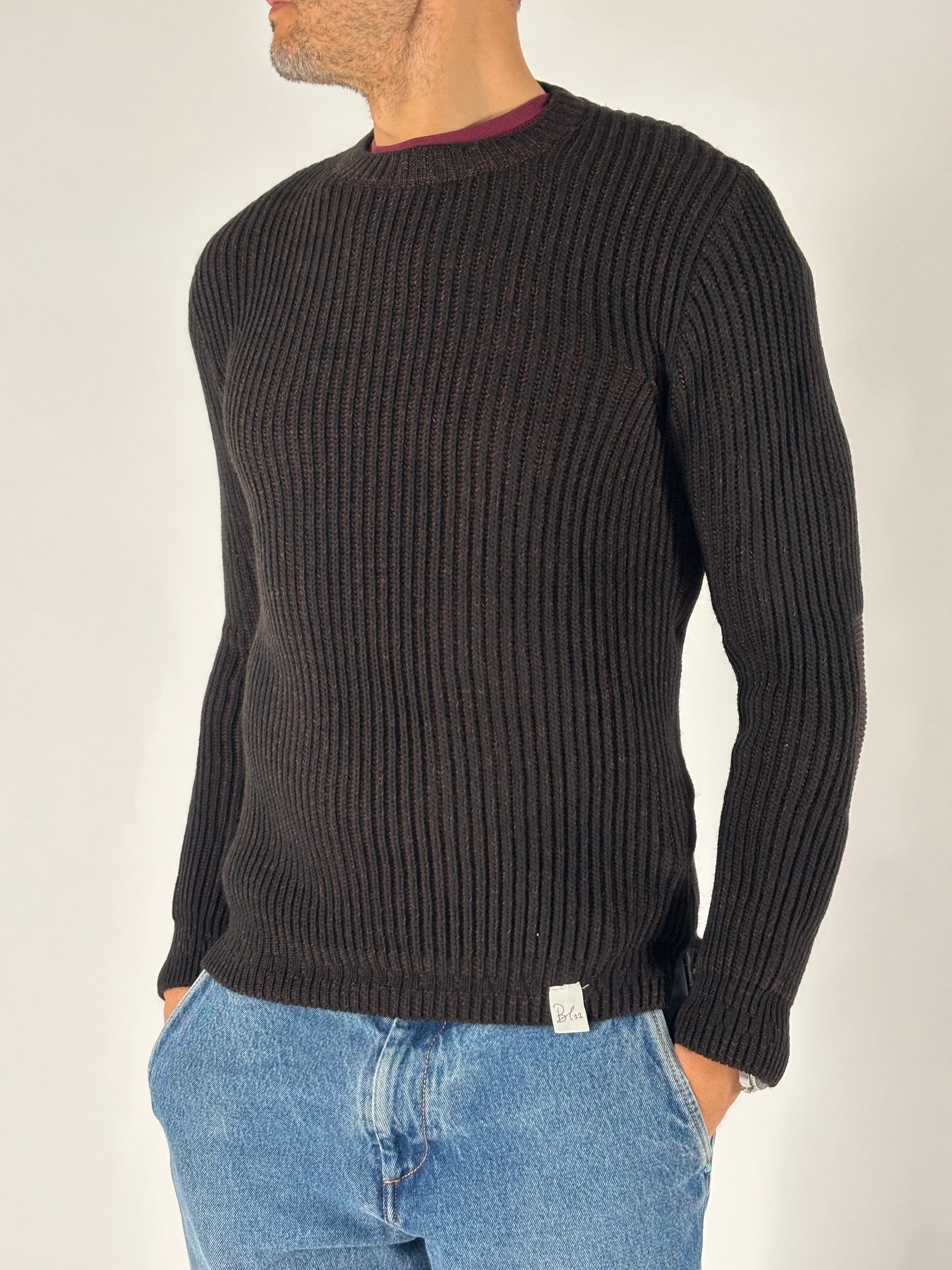 BL11 Maglia girocollo costa inglese NERO/MARRONE
