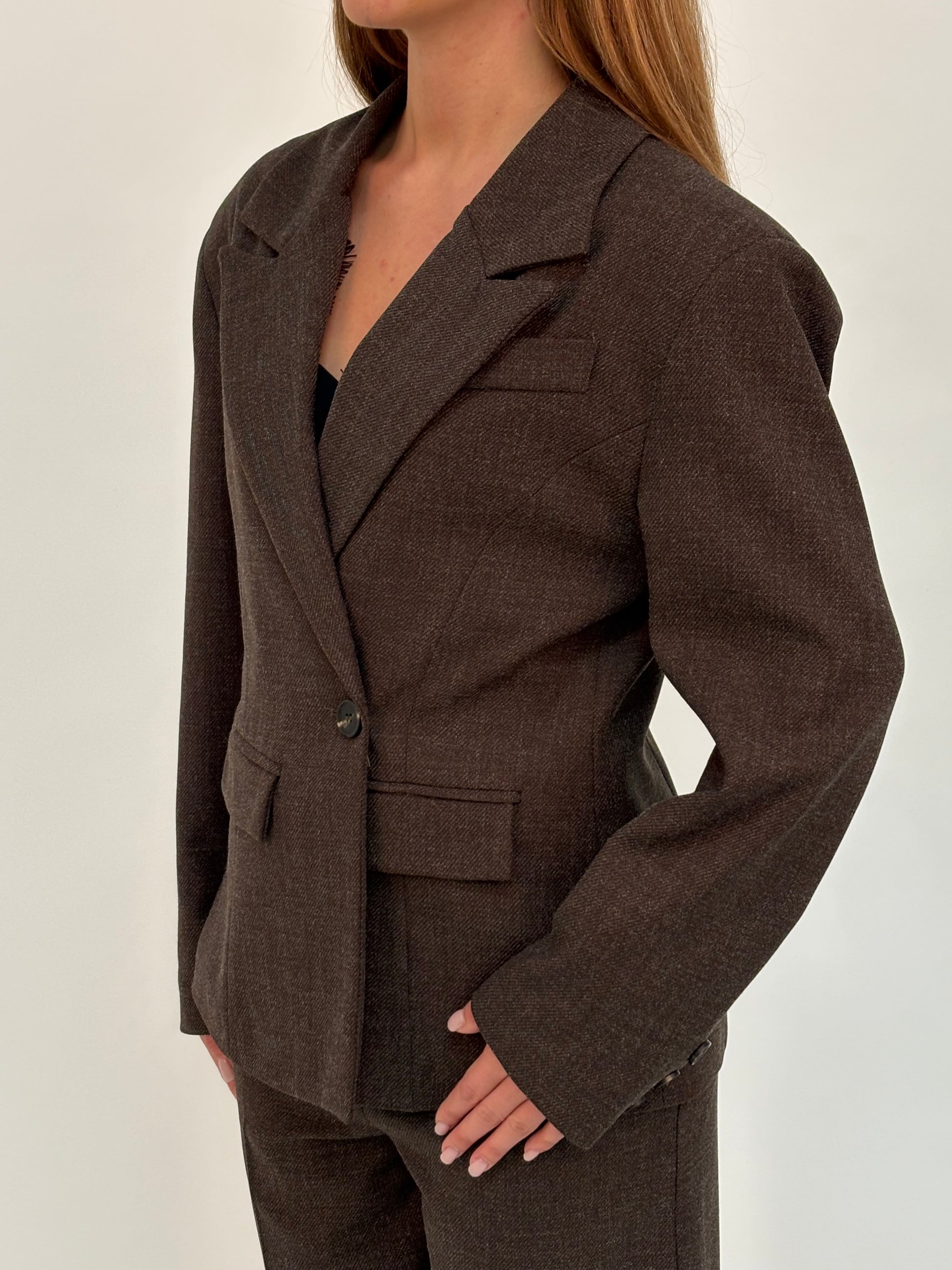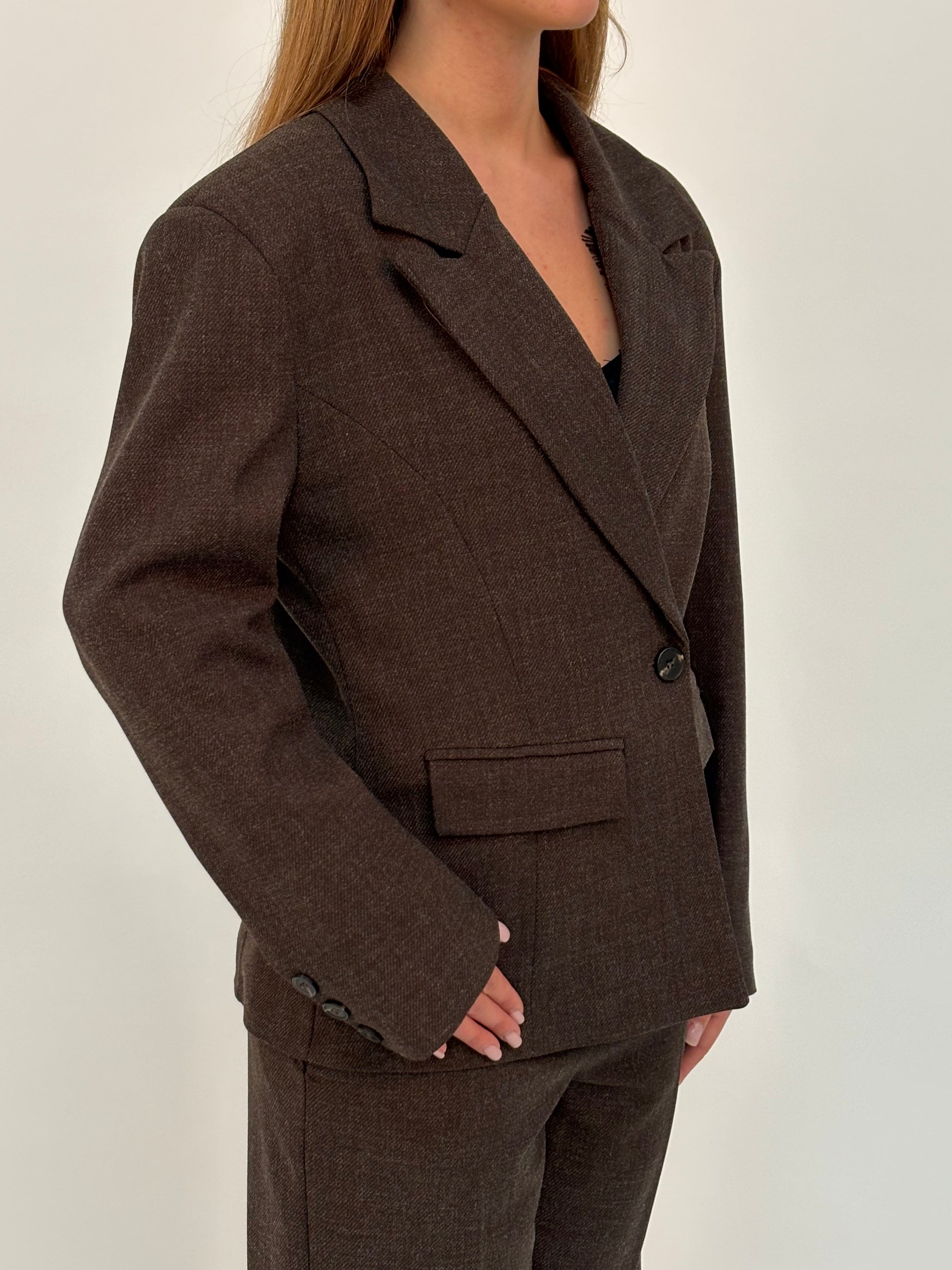 - Dixie Giacca un bottone avvitata, con fodera interna marrone, taschino e tasche a patta