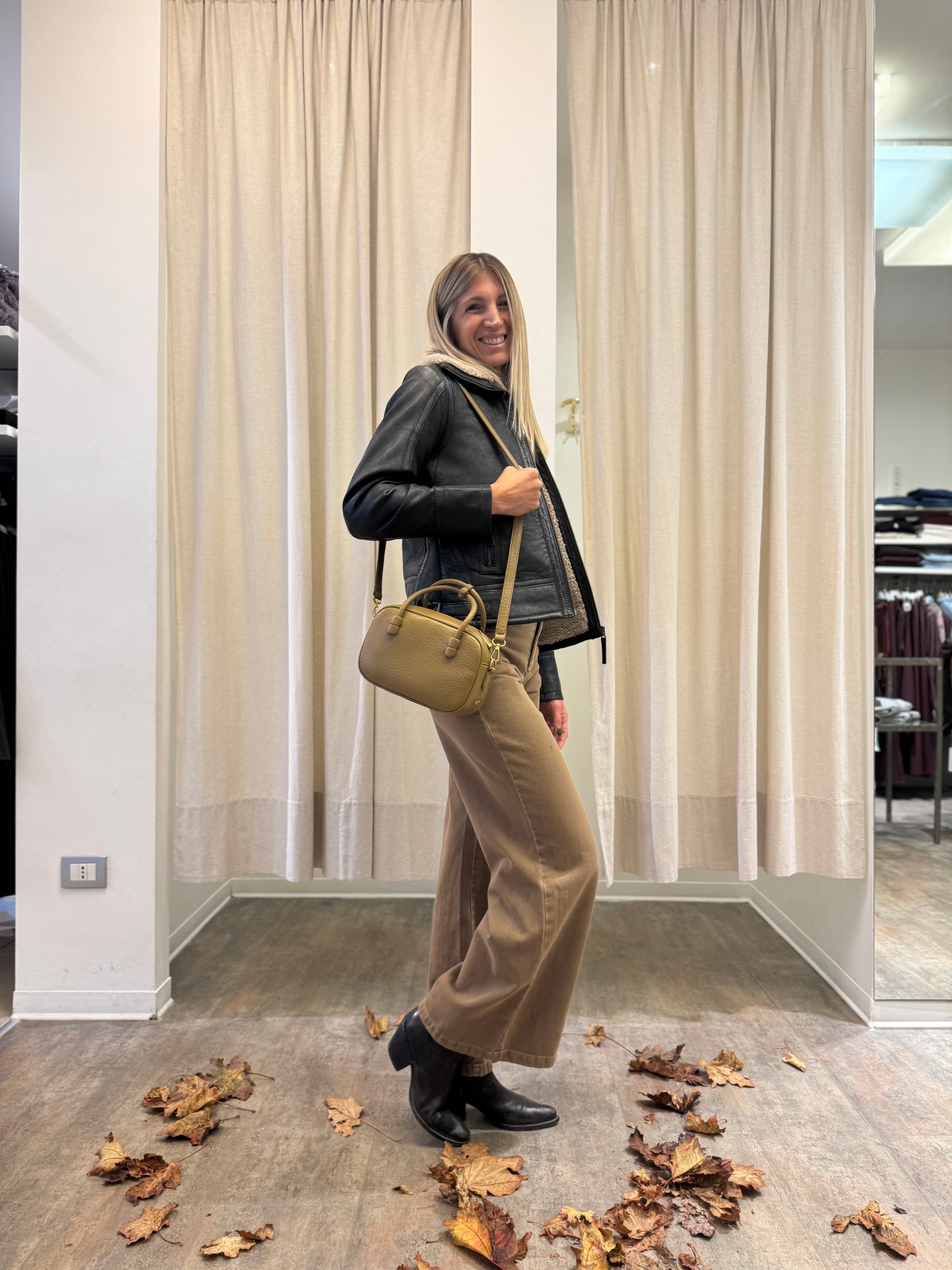 - Eco Pantalone palazzo in cotone modello cinque tasche con bottone gioiello e zip