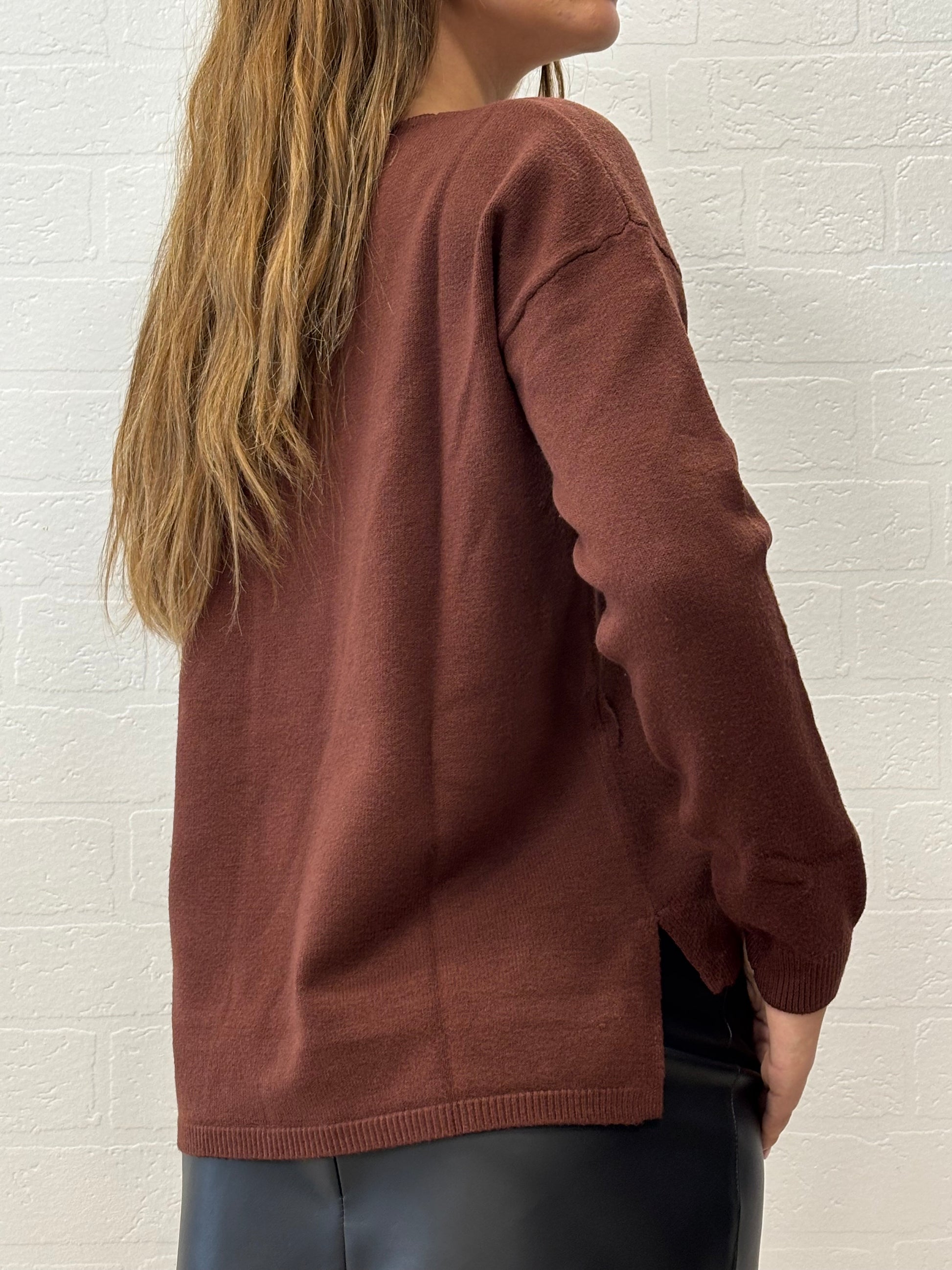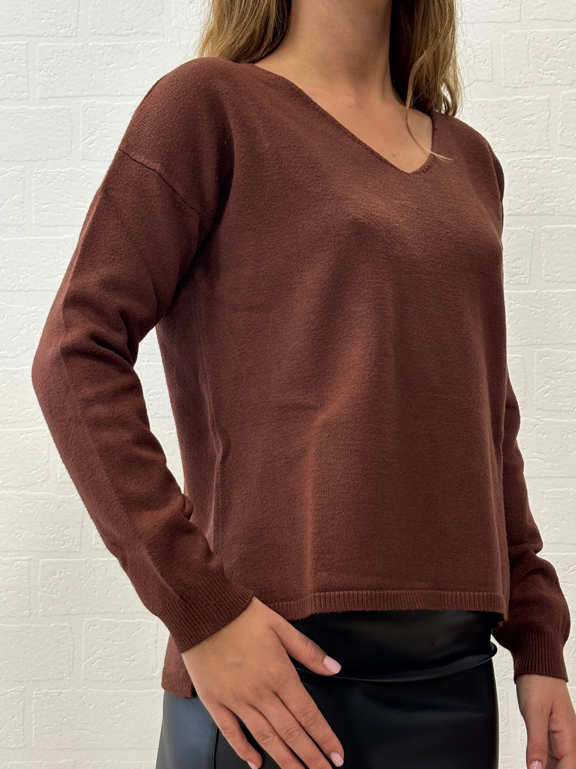 Griffai Maglia collo V spacchetti laterali MARRONE
