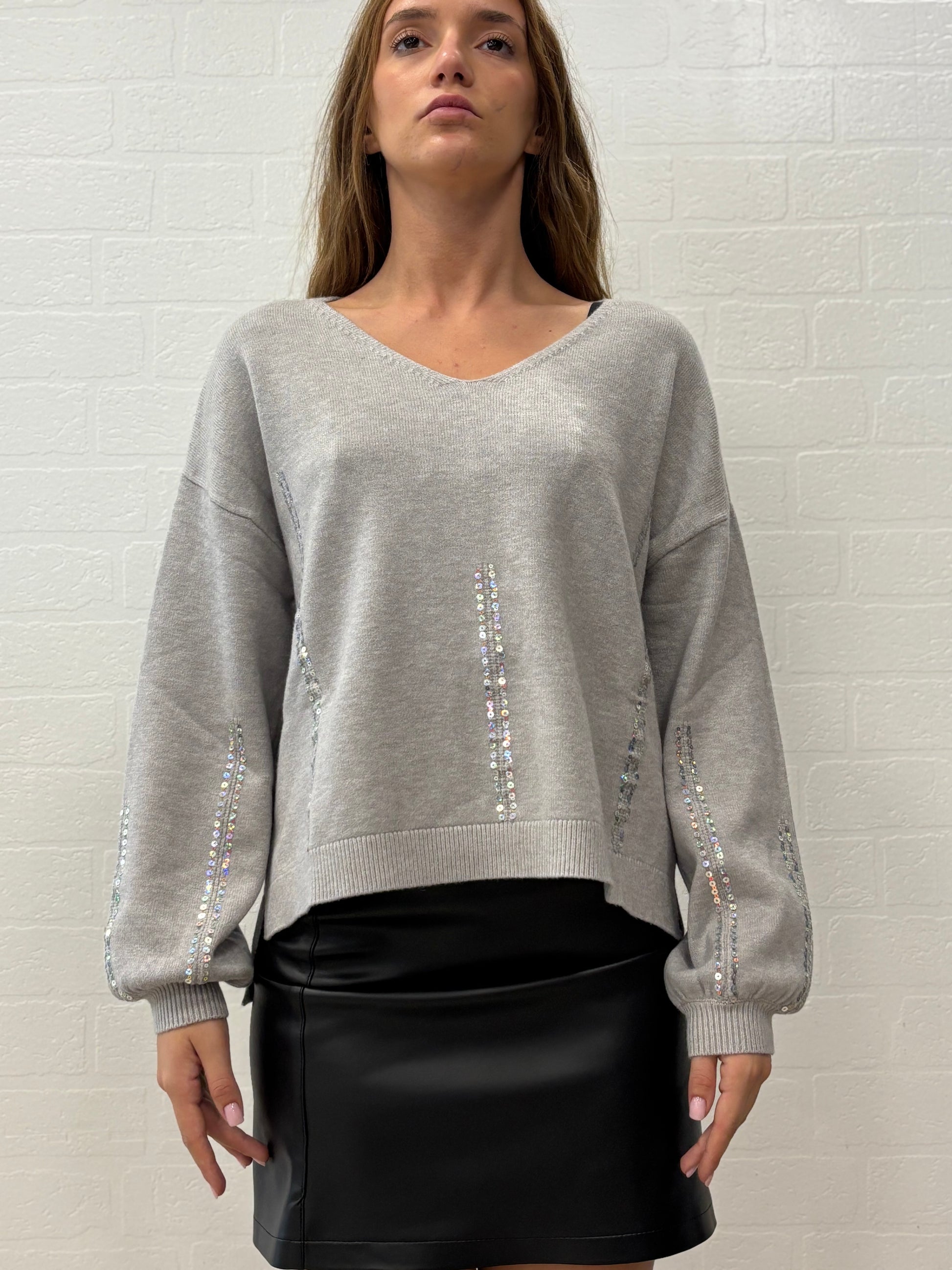 - Griffai Maglia over collo V over con paillettes, leggermente più corta davanti con spacchetti laterali