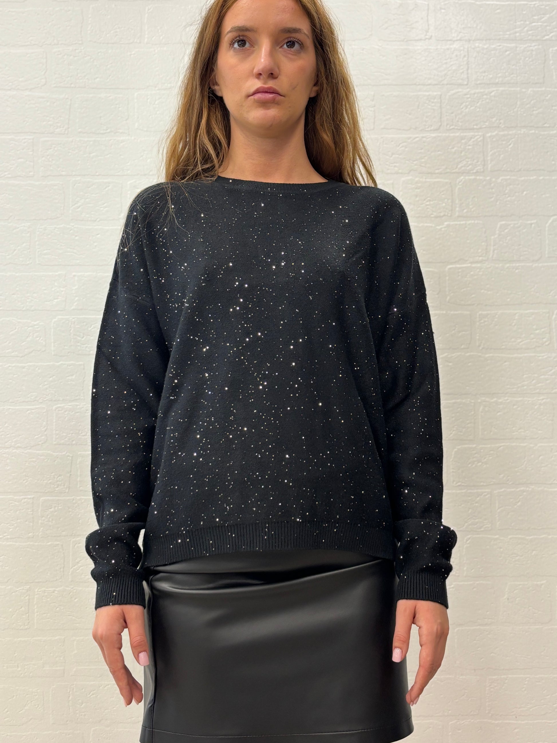 Griffai Maglia over girocollo ml con paillettes argento NERO