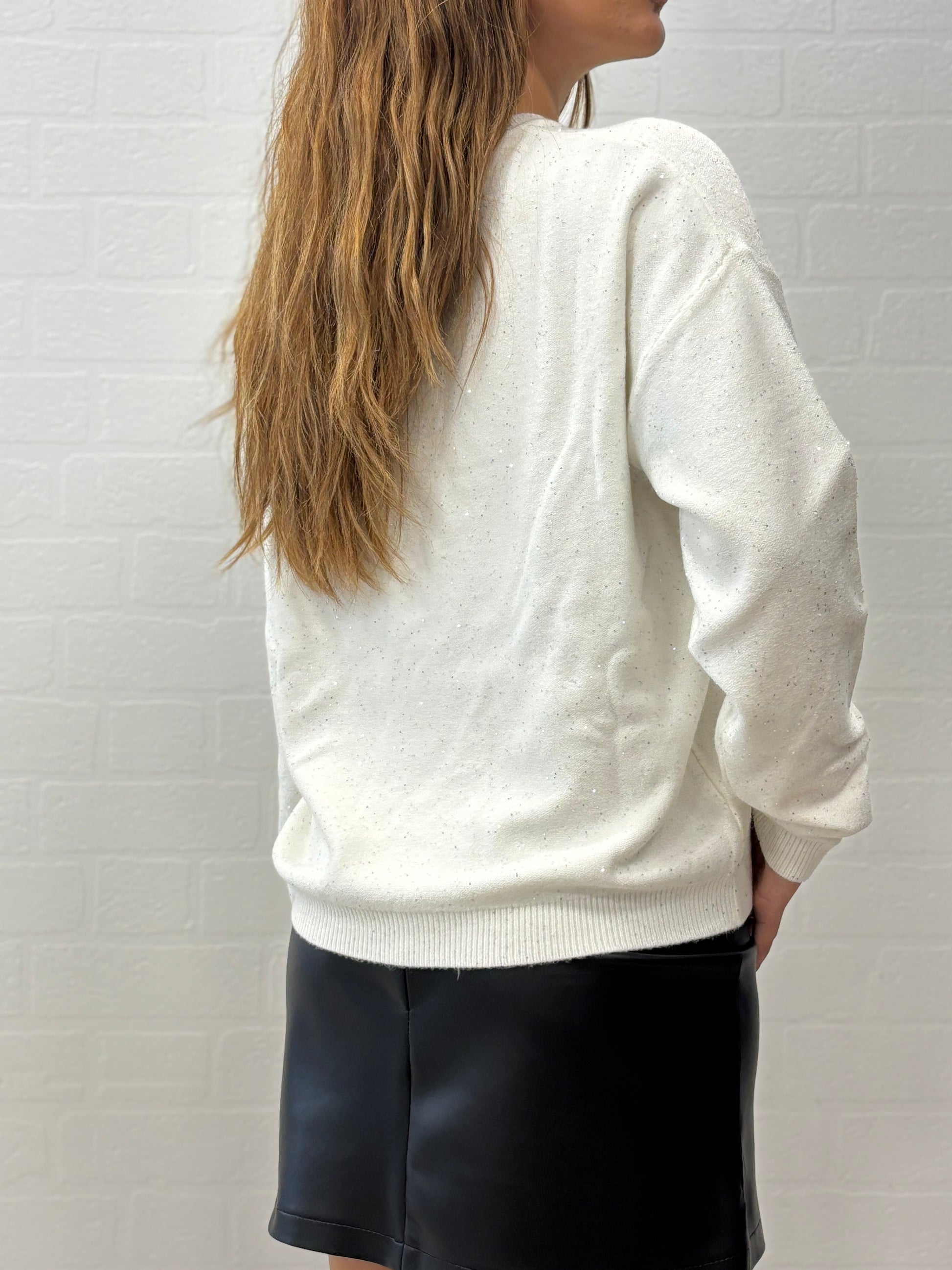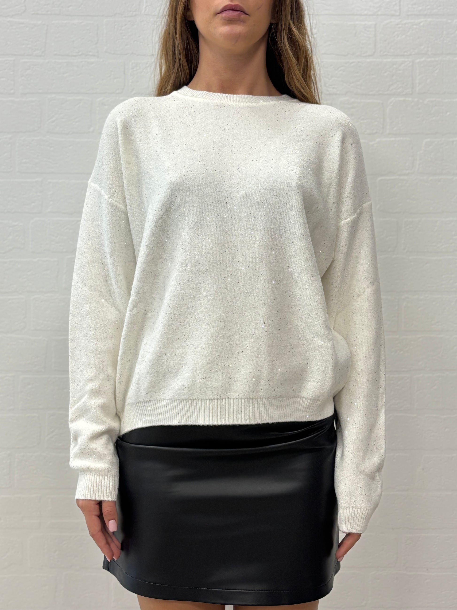 Griffai Maglia over girocollo ml con paillettes argento PANNA