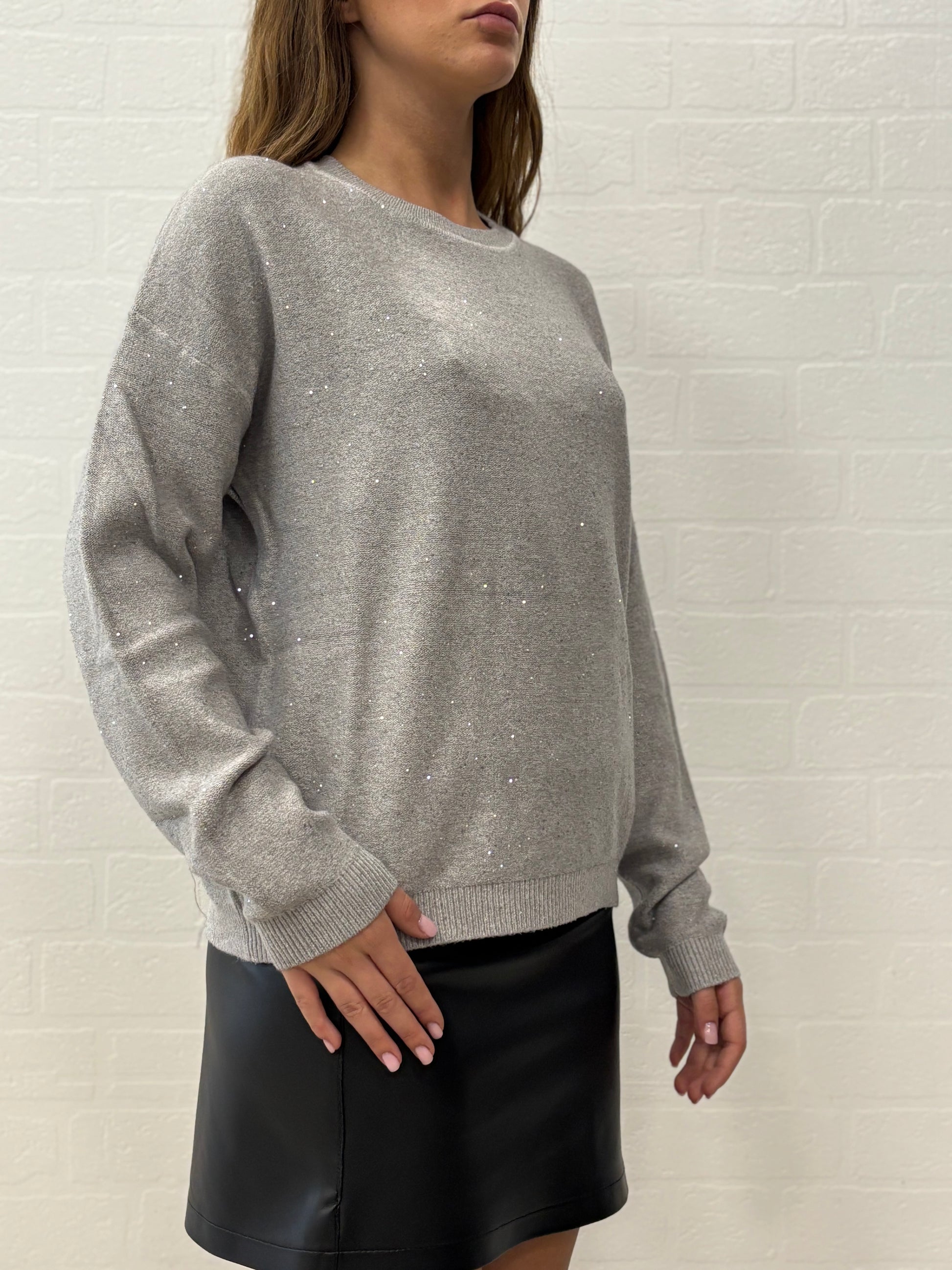 - Griffai Maglia over girocollo ml con paillettes argento
