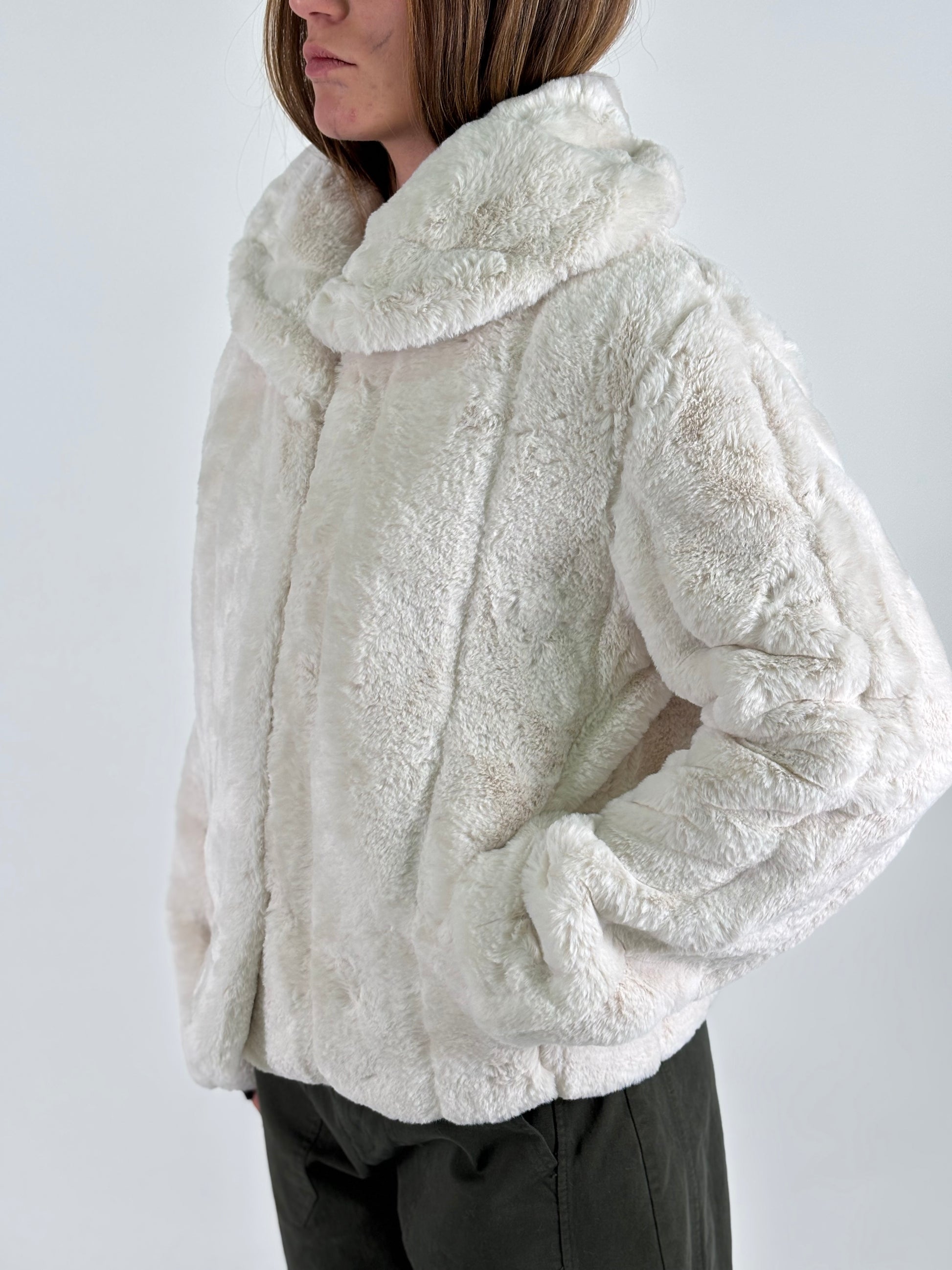 - Guess Pelliccia corta sintetica con chiusura con ganci in tinta e collo, fodera interna logata e tasche
