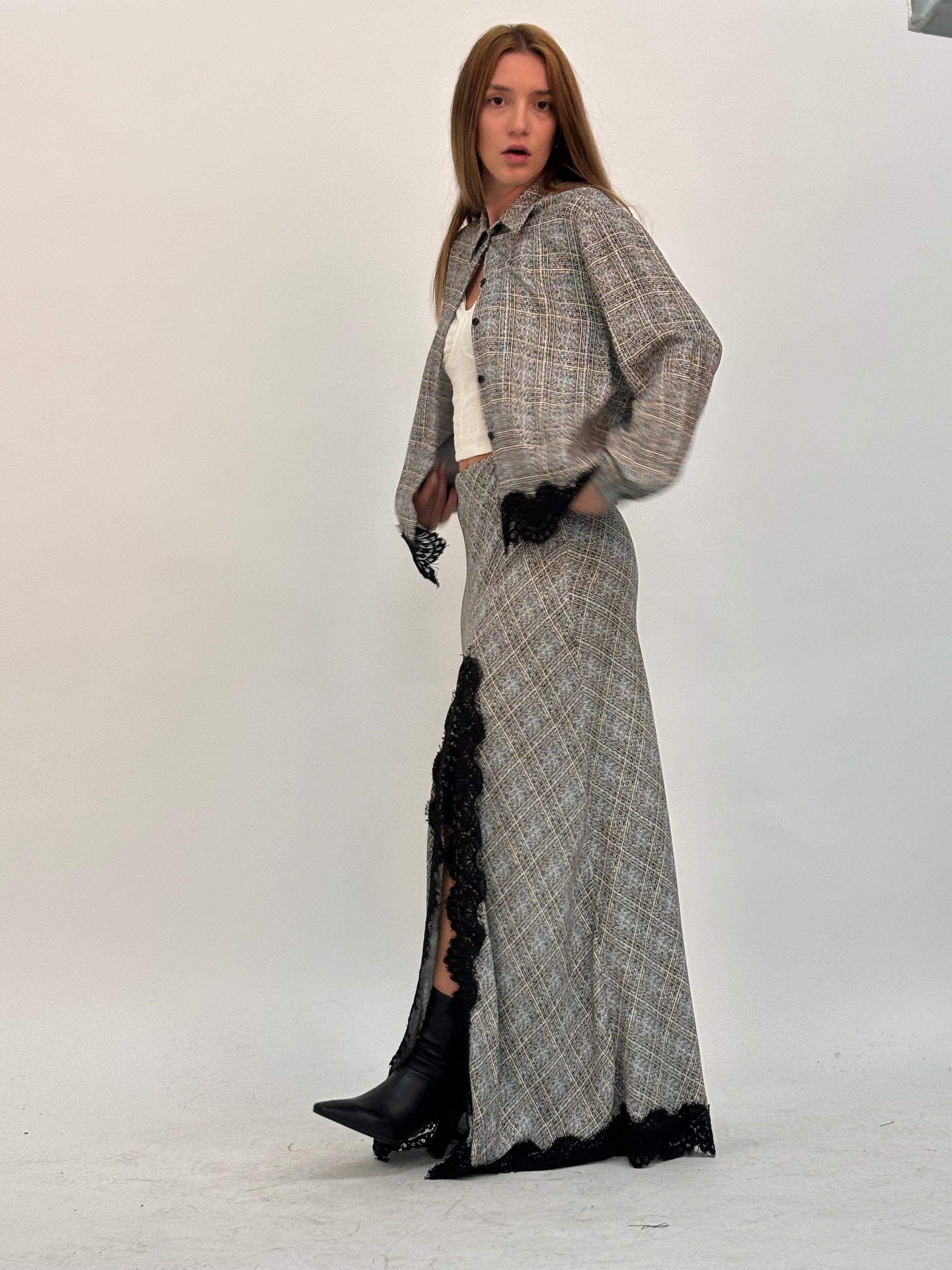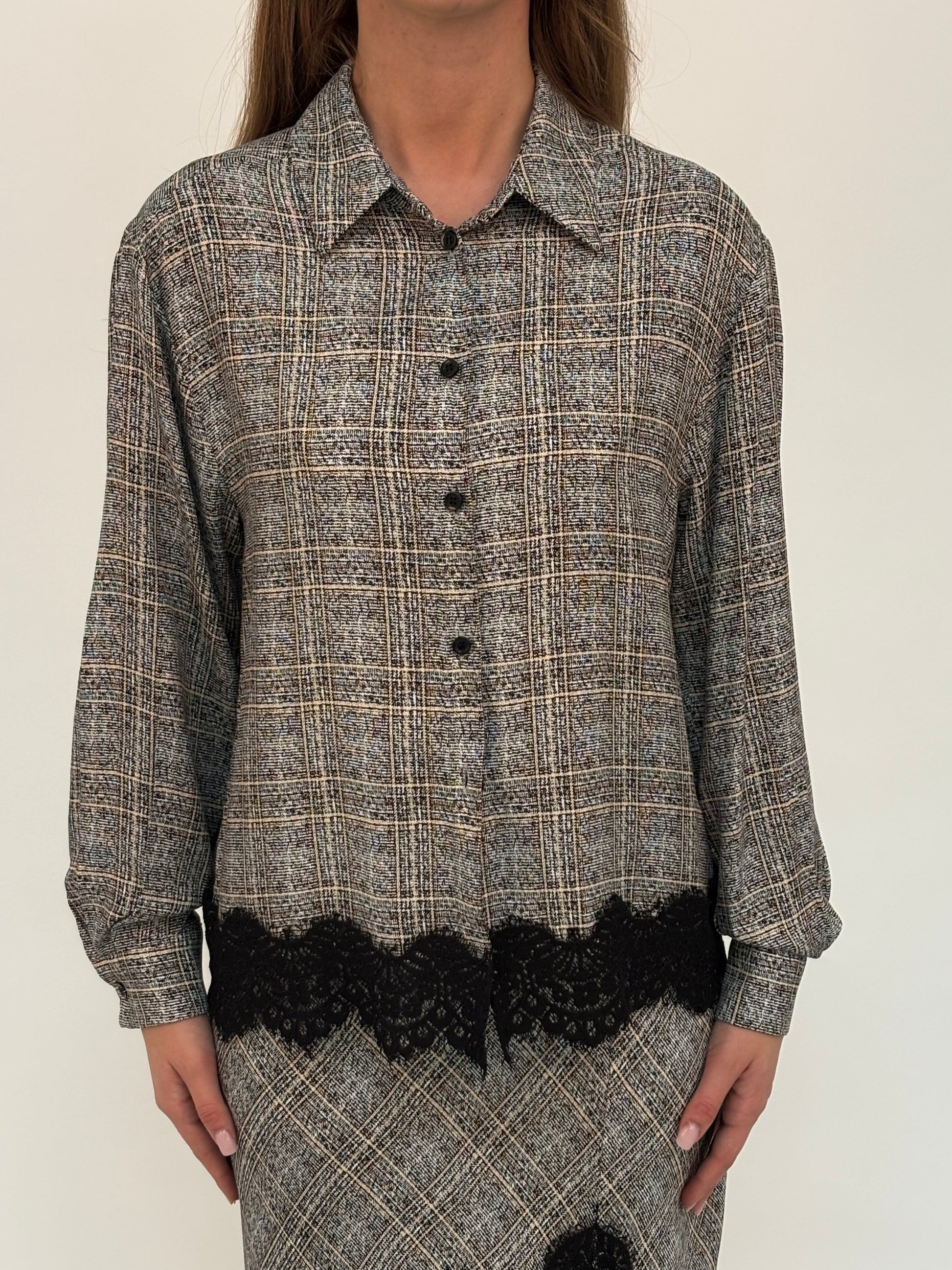 Haveone Camicia ml over con pizzo nero SCACCO NERO/BEIGE/PANNA