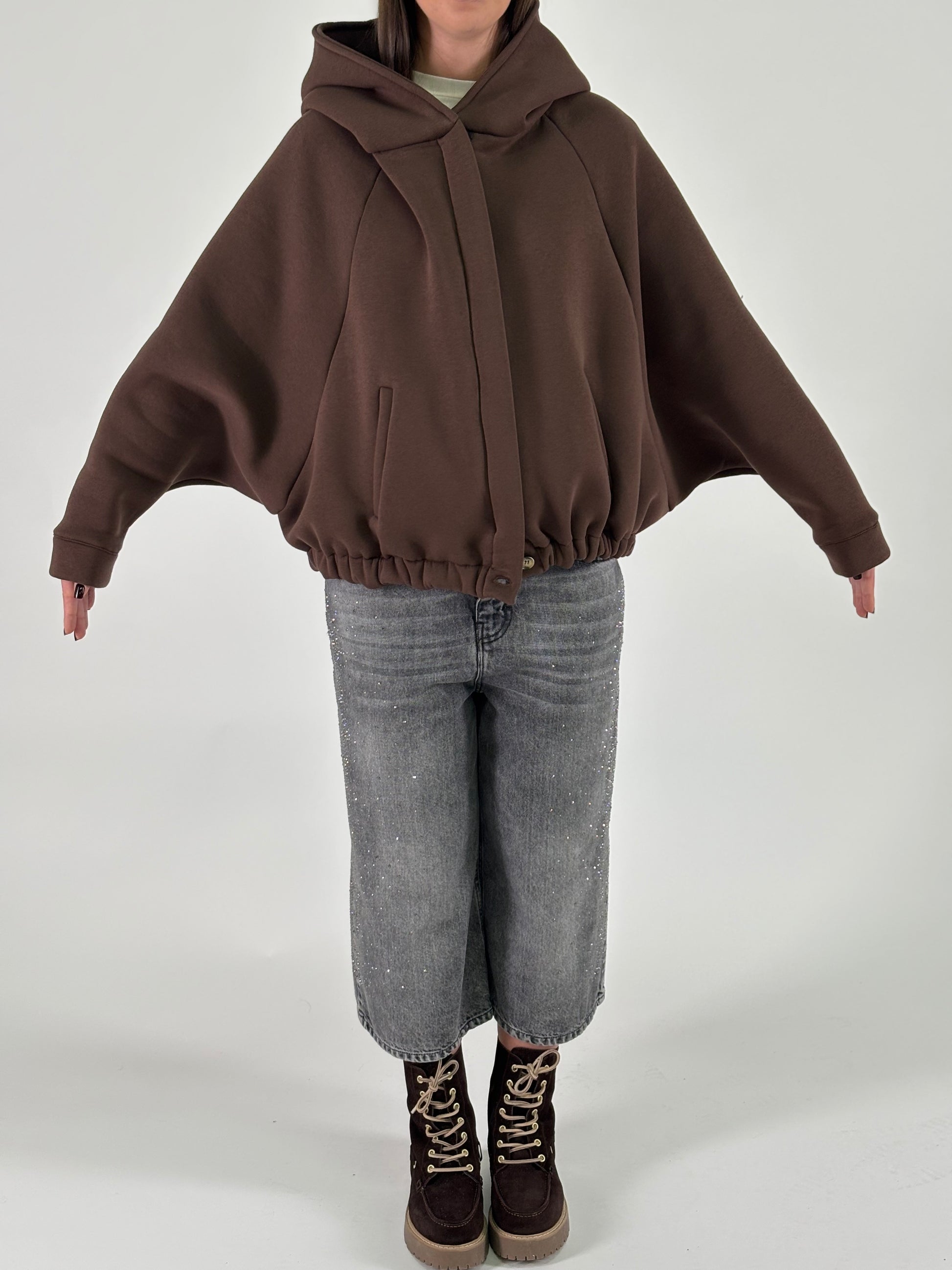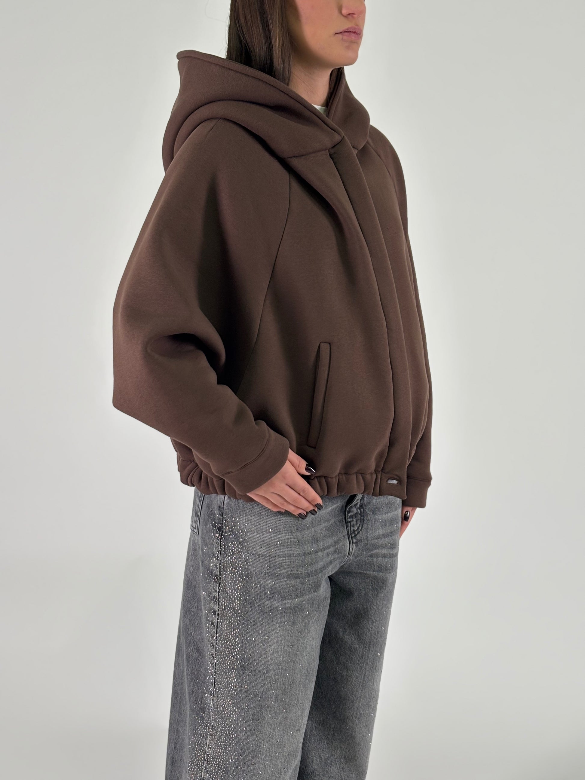 - Haveone Giubbino cropped con cappuccio, tasche a filo, allacciatura con zip finta coperta e bottone, elastico in vita, interno felpato