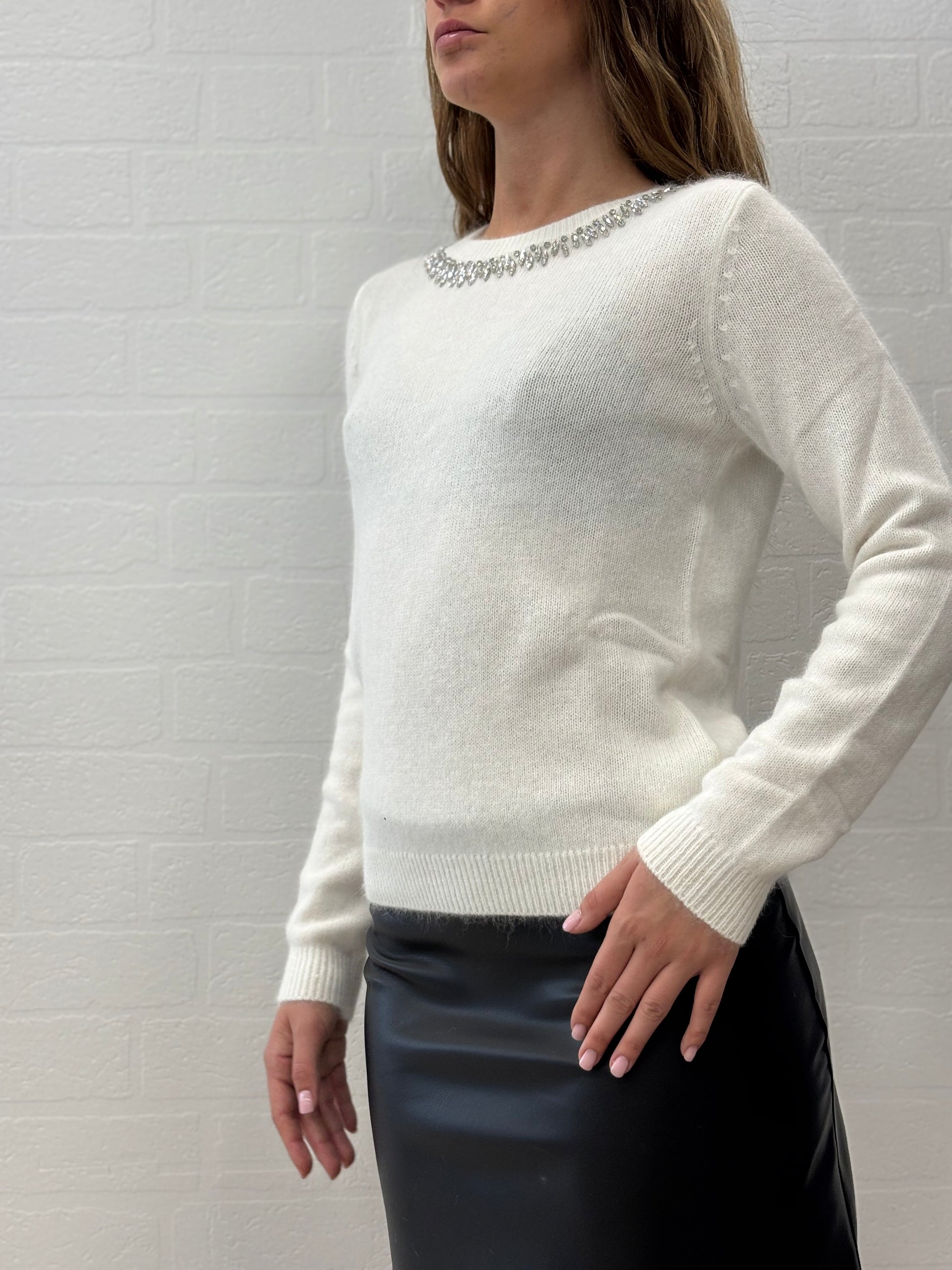 Kocca Maglia girocollo gioiello angora/lana PANNA
