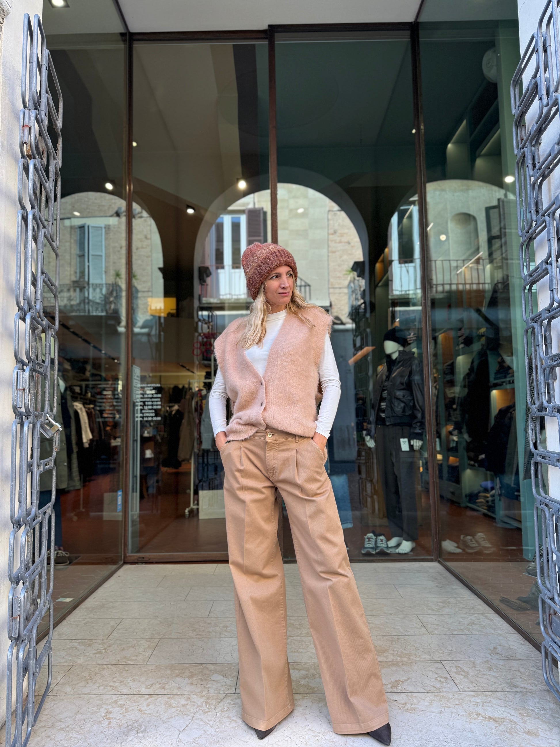 - Kocca Pantalone palazzo con pince, tasca uomo, passanti, allacciatura un bottone più zip