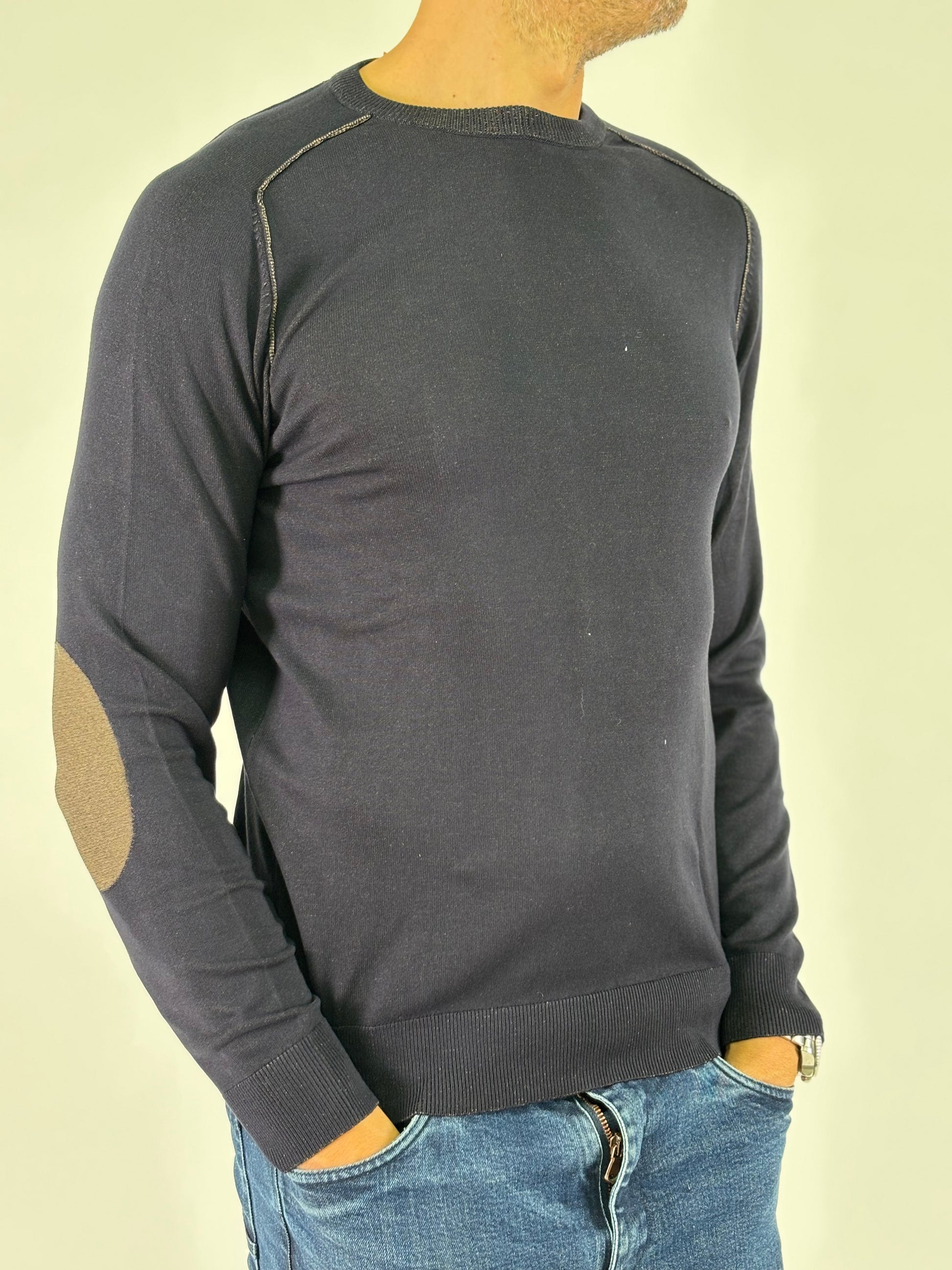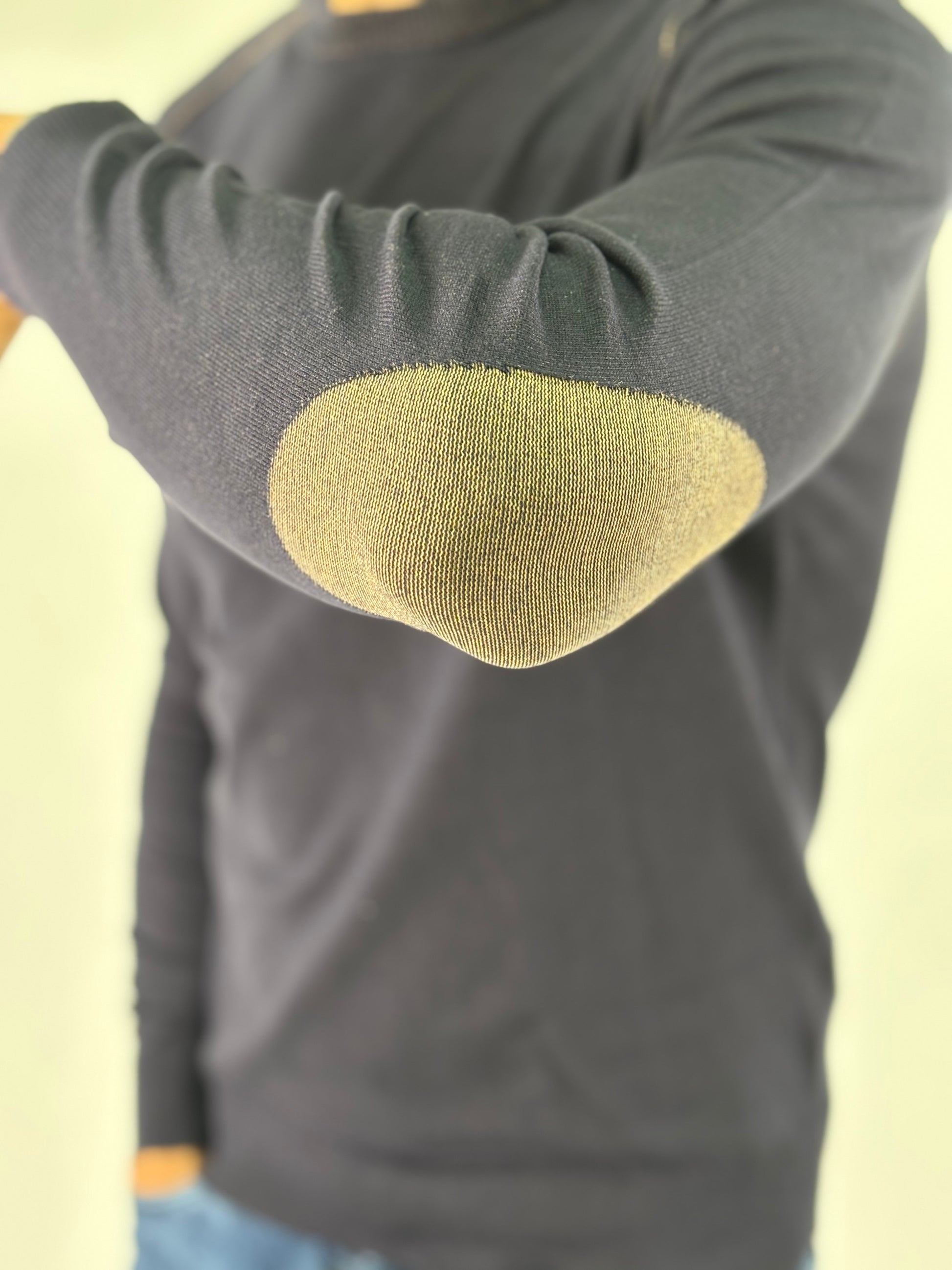 - Loft88 maglia girocollo ml con toppa beige, fondo e polsino a costine