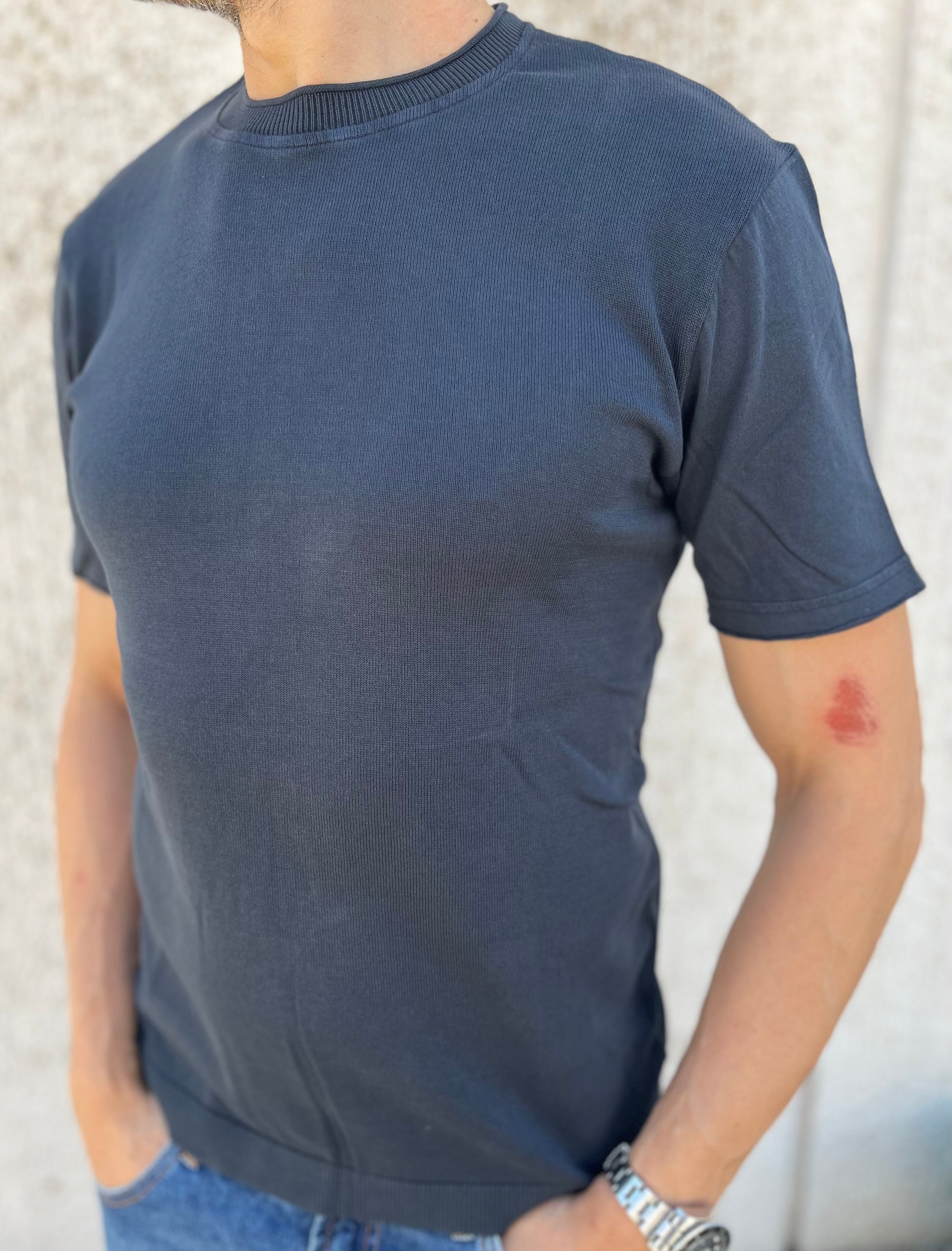 loft88 maglia manica corta in filo di cotone schiena liscia BLU