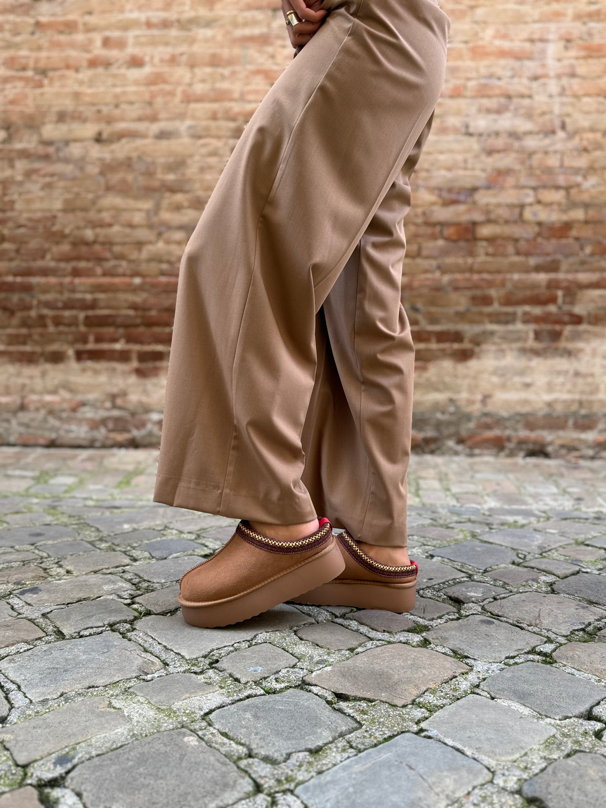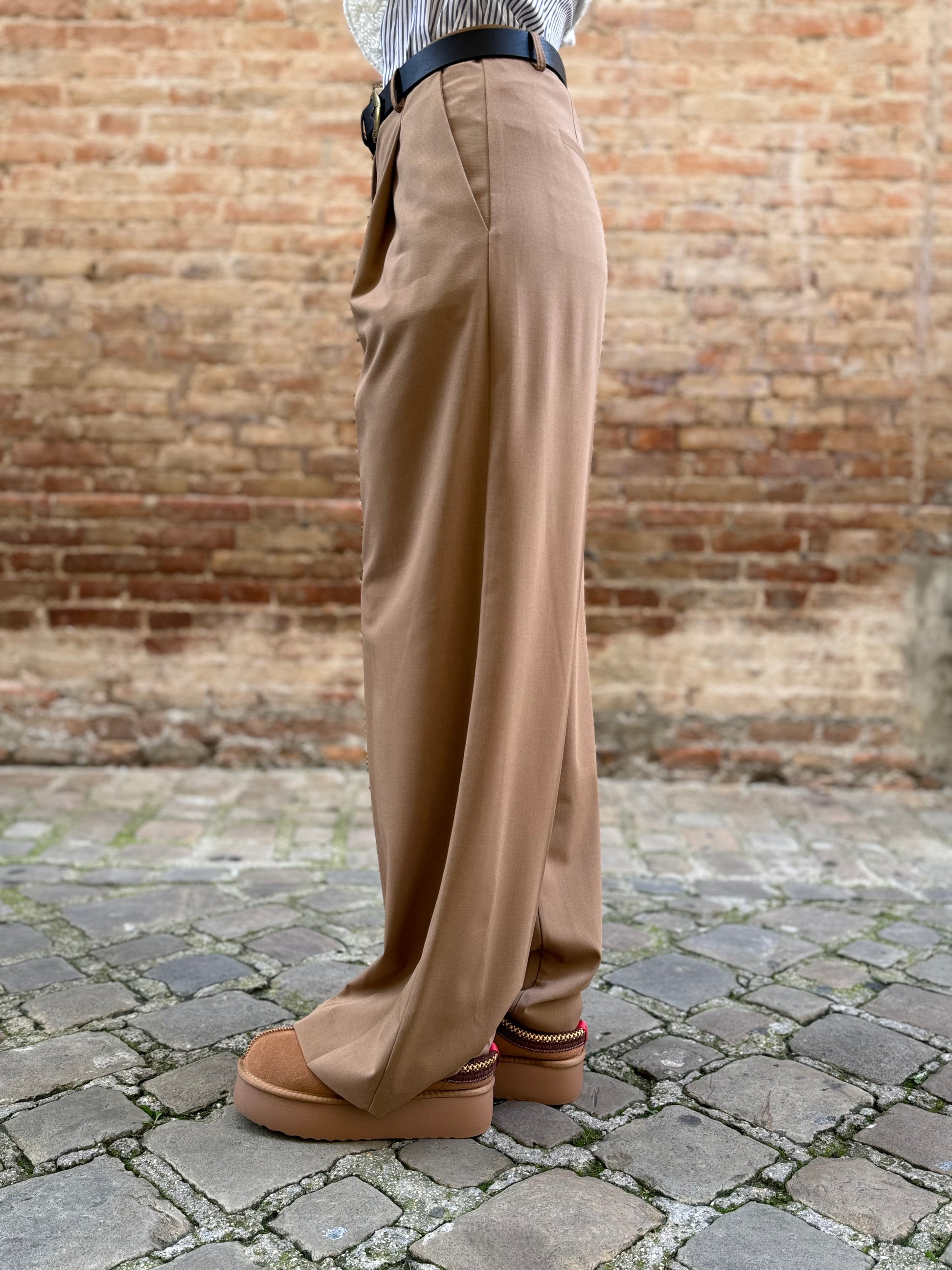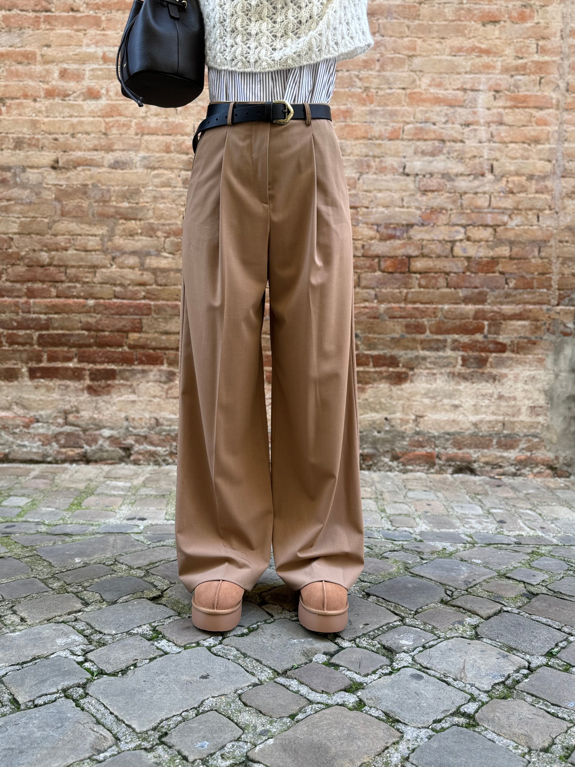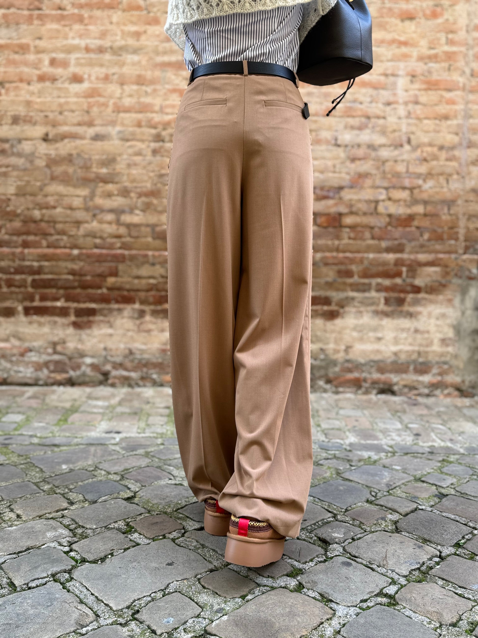 Merci Pantalone dritto con pences, tasche laterali, zip e gancio CAMMELLO