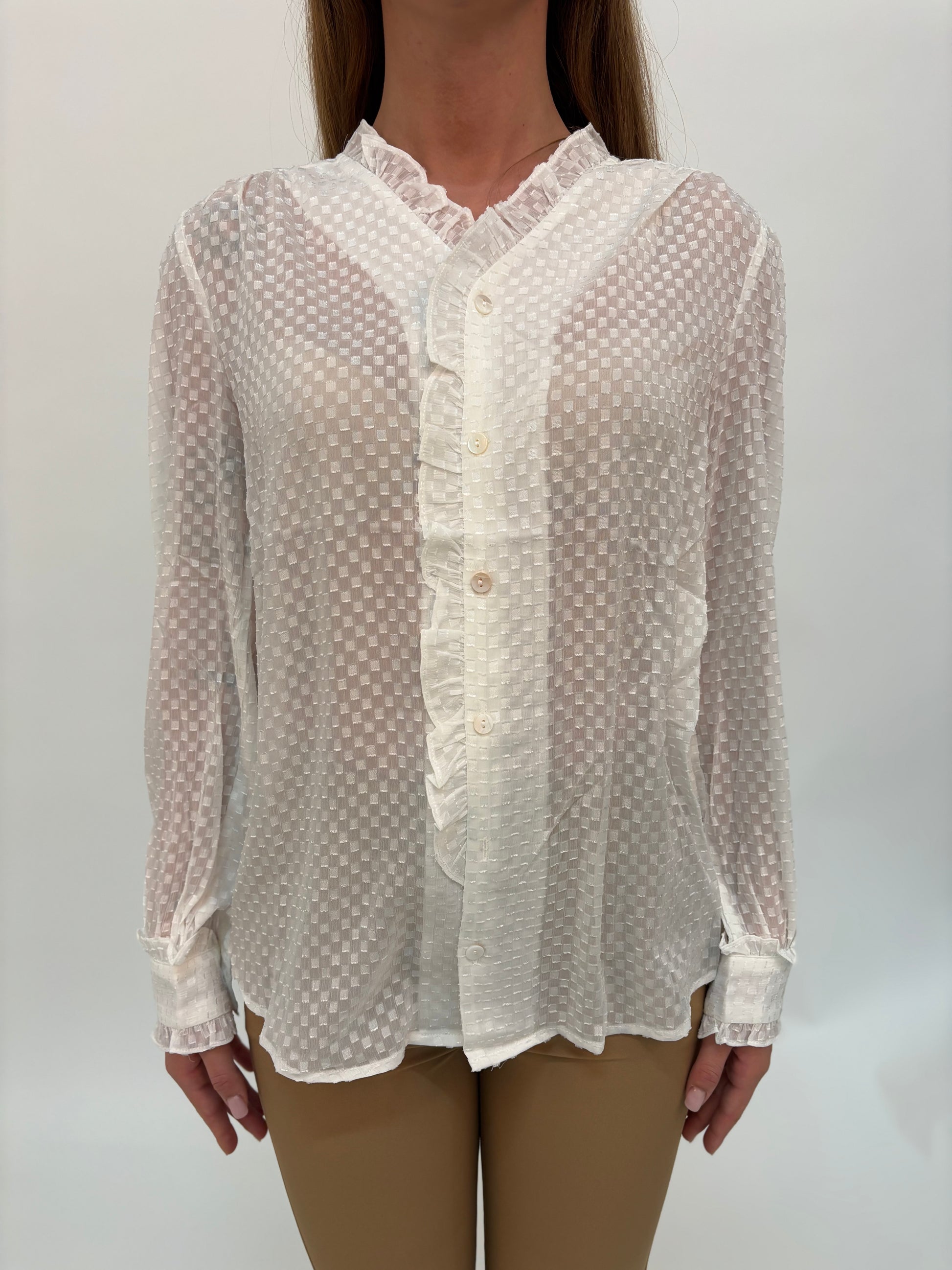 - Molly Bracken Camicia ml V fantasia scacchetti tono su tono con frappetta lungo lo scollo