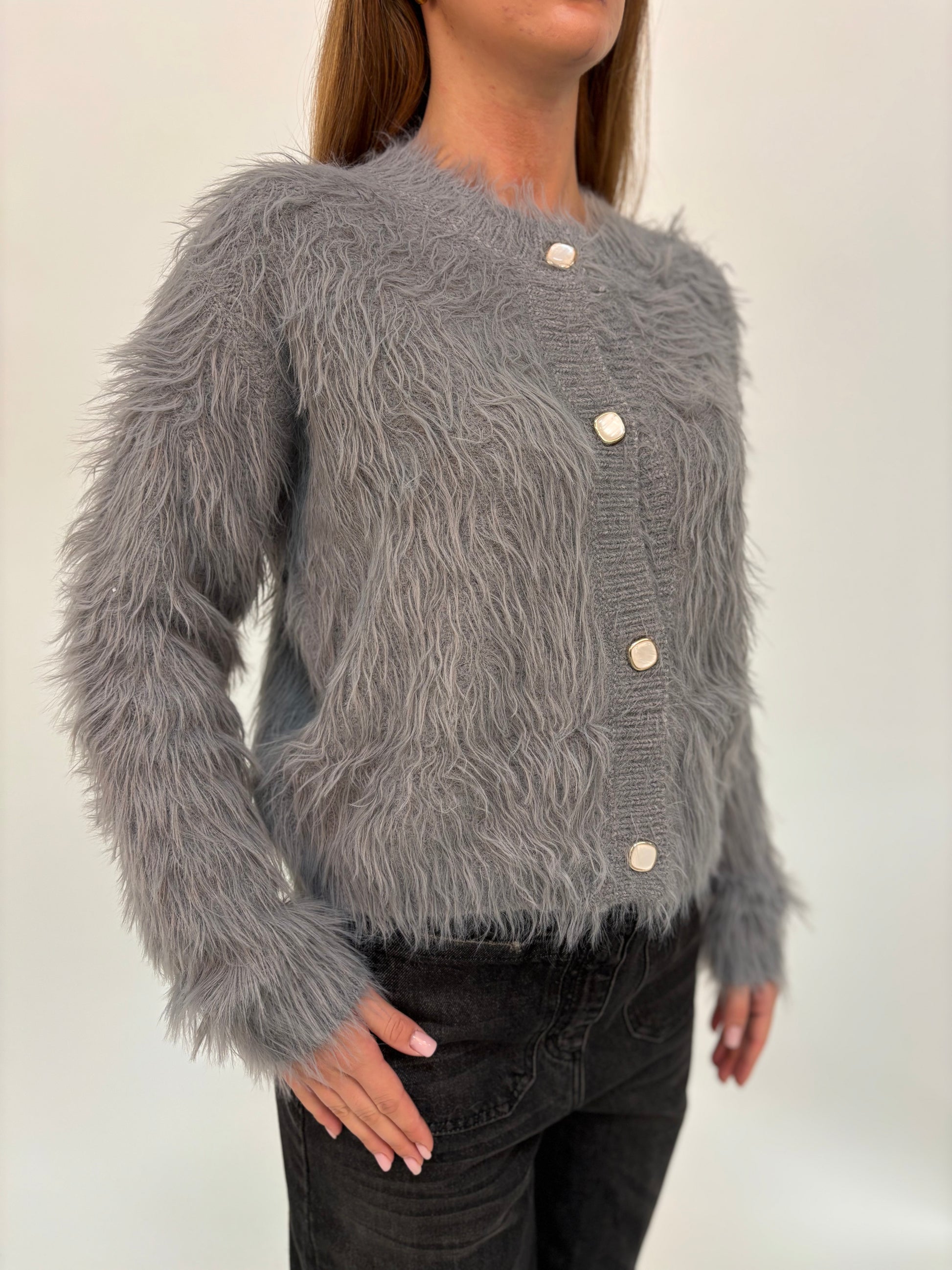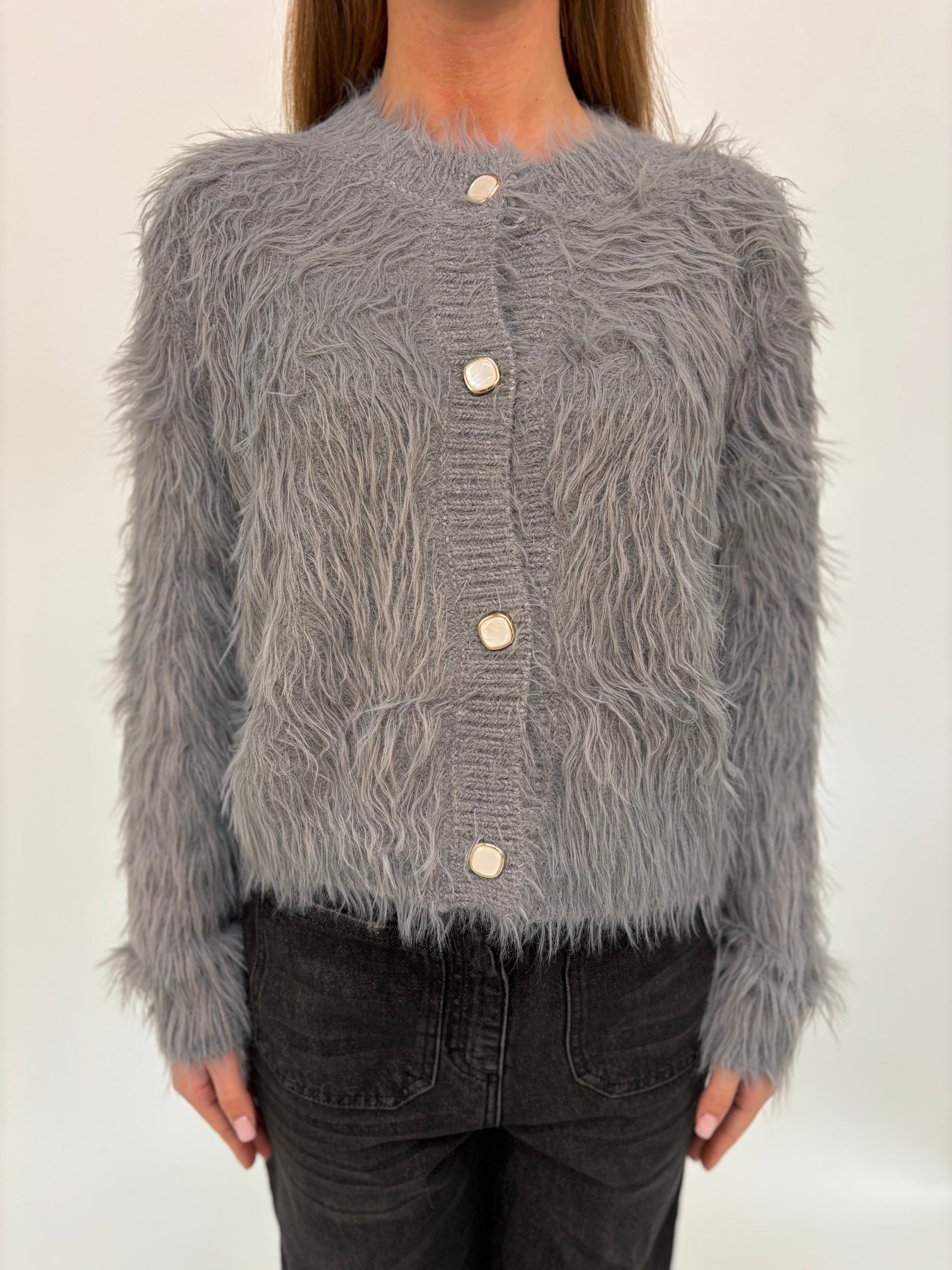 Molly Bracken Cardigan corto girocollo peluche GRIGIO