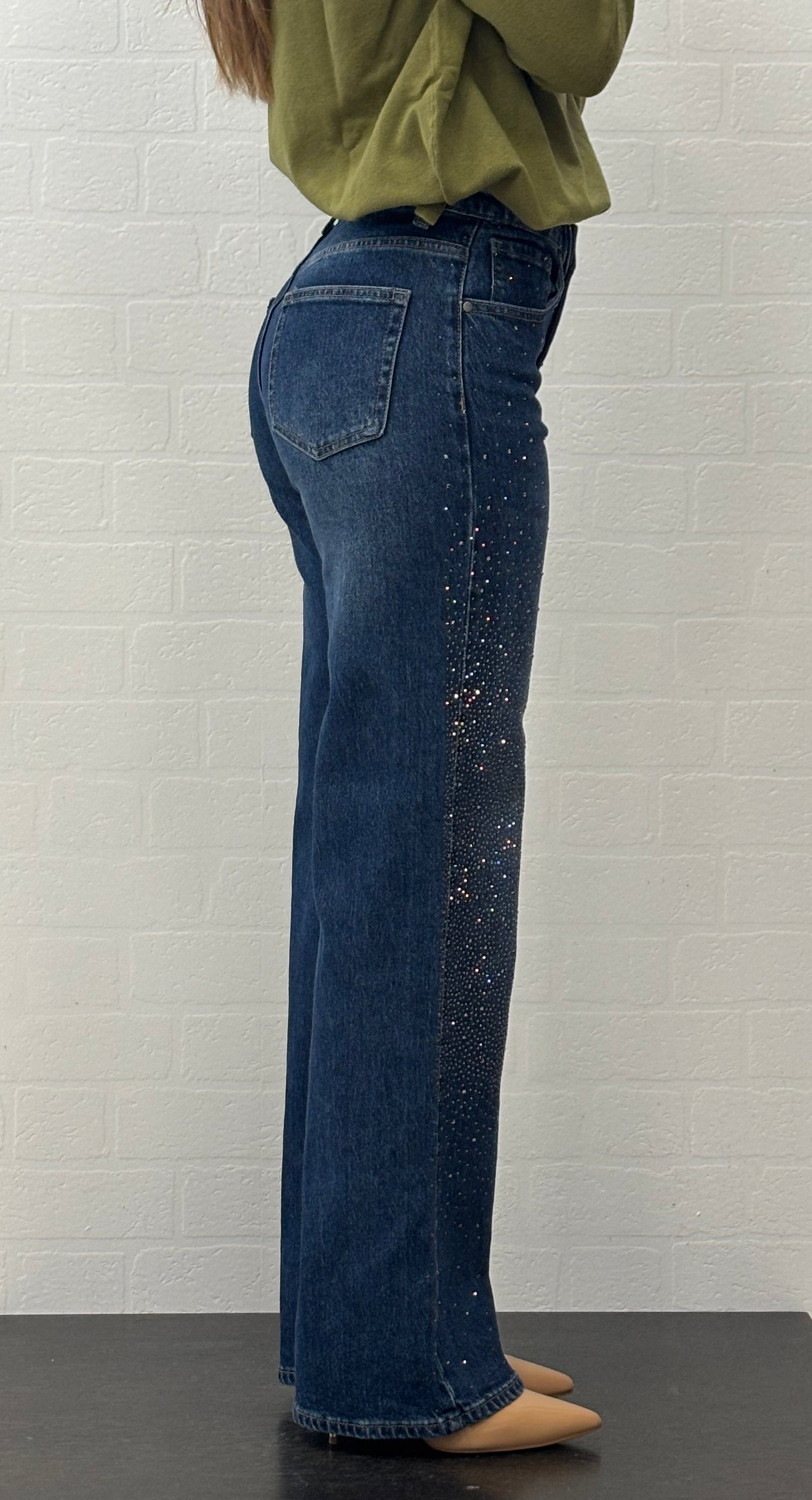 - Myastreet Jeans palazzo con punti luce lav. scuro, allacciatura ad un bottone più zip. I punti luce sono solo sulla parte davanti del jeans