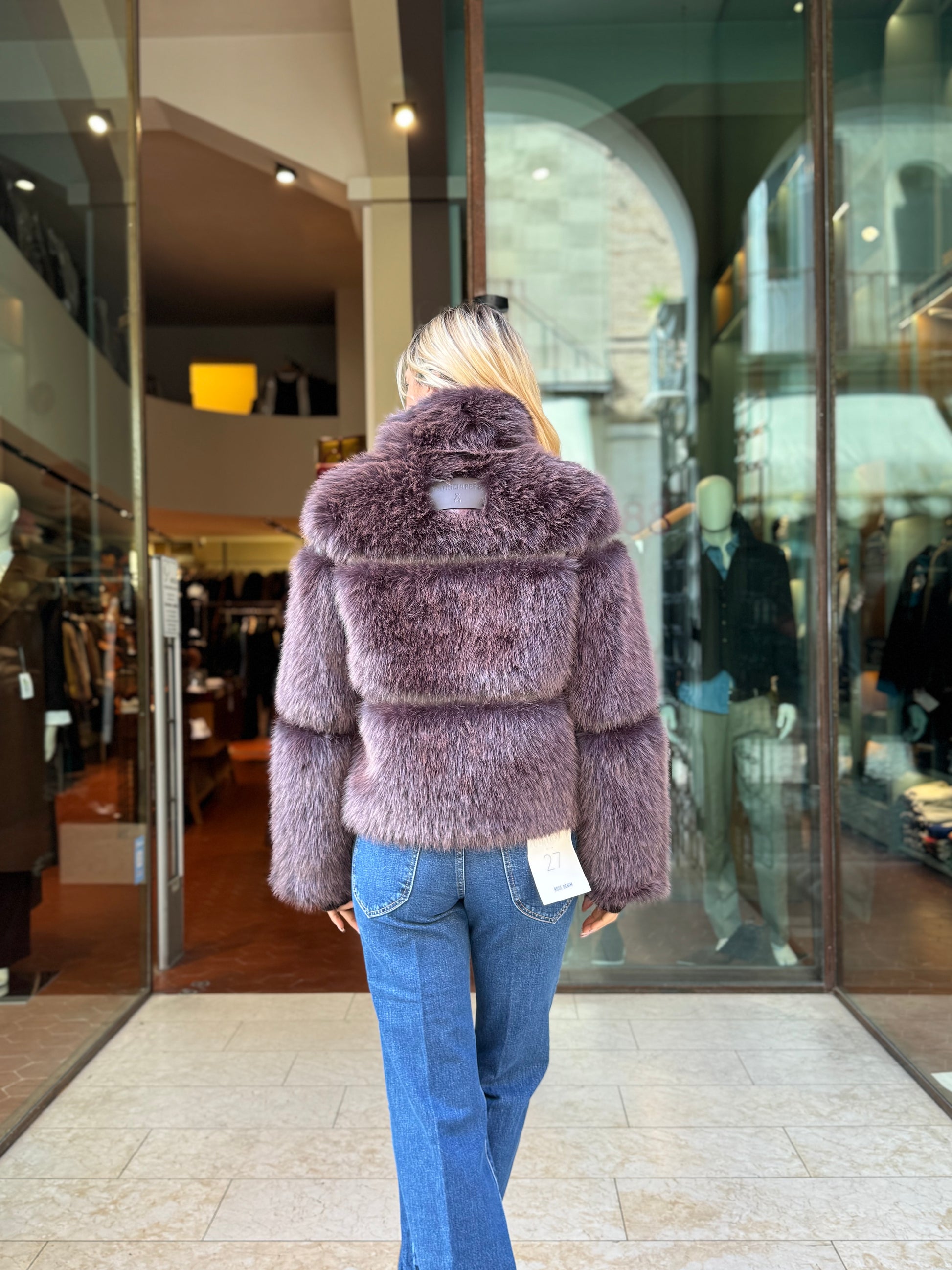 - Patrizia Pepe Pelliccia sintetica corta polsino a costine grigio, allacciatura con bottoni automatici e fodera interna grigia