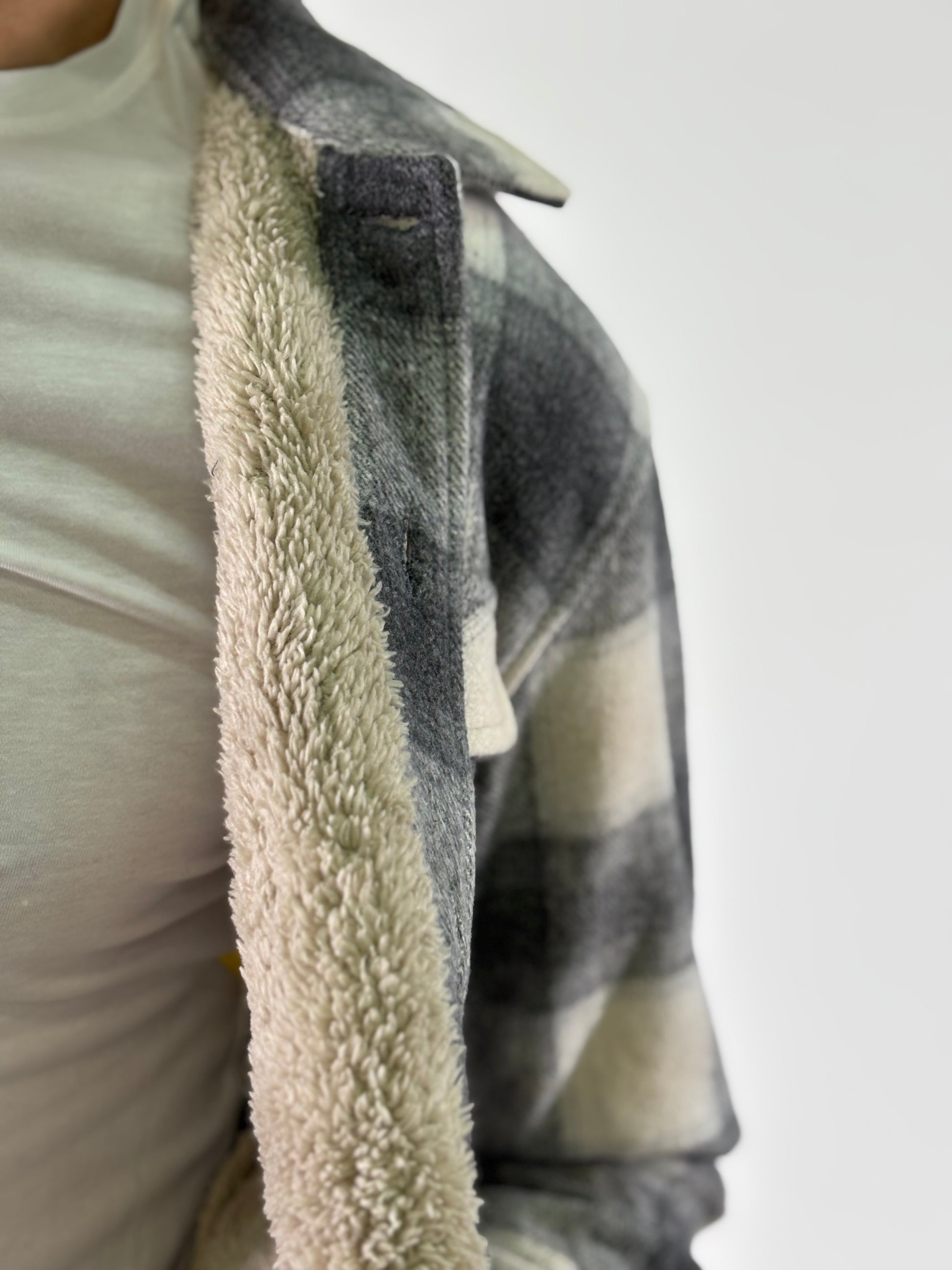 Philotinto overshirt a scacchi con pelliccia intera GRIGIO/PANNA