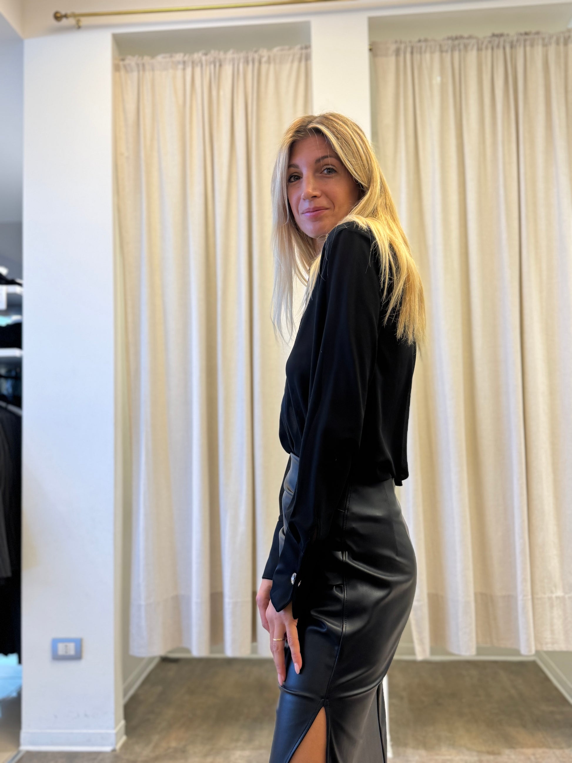 Relish Camicia ml colletto, finta coperta e polsini in raso NERO