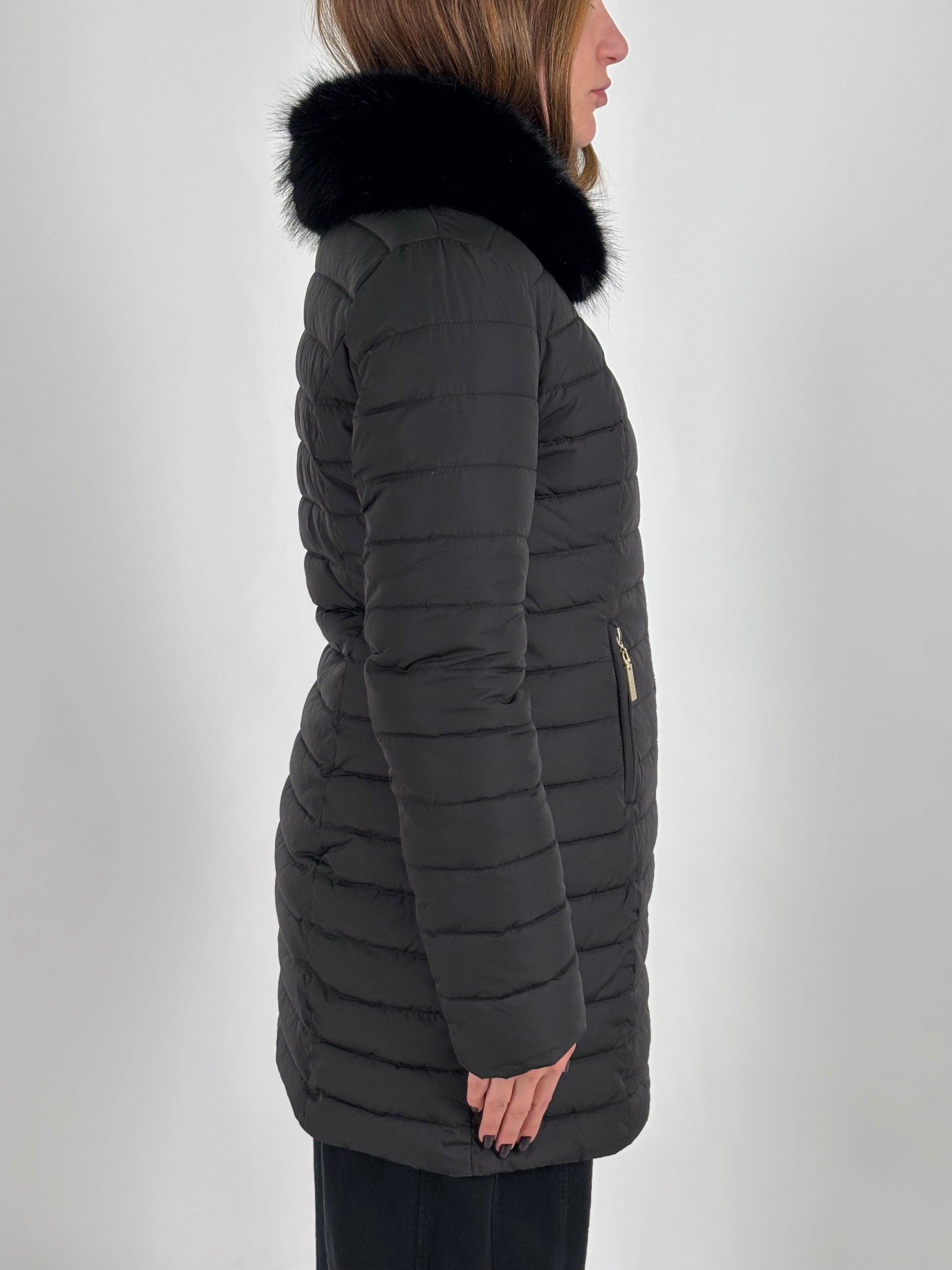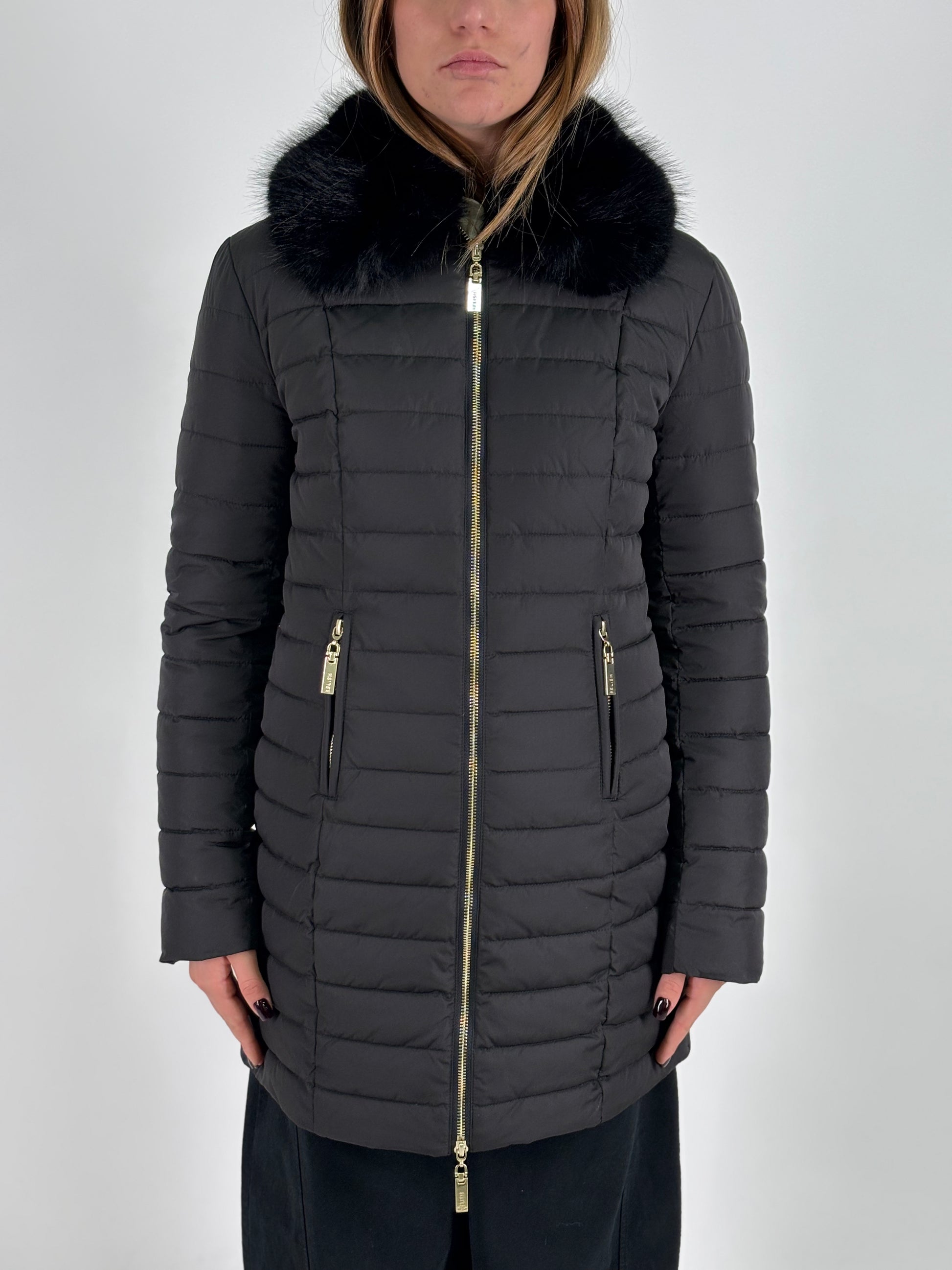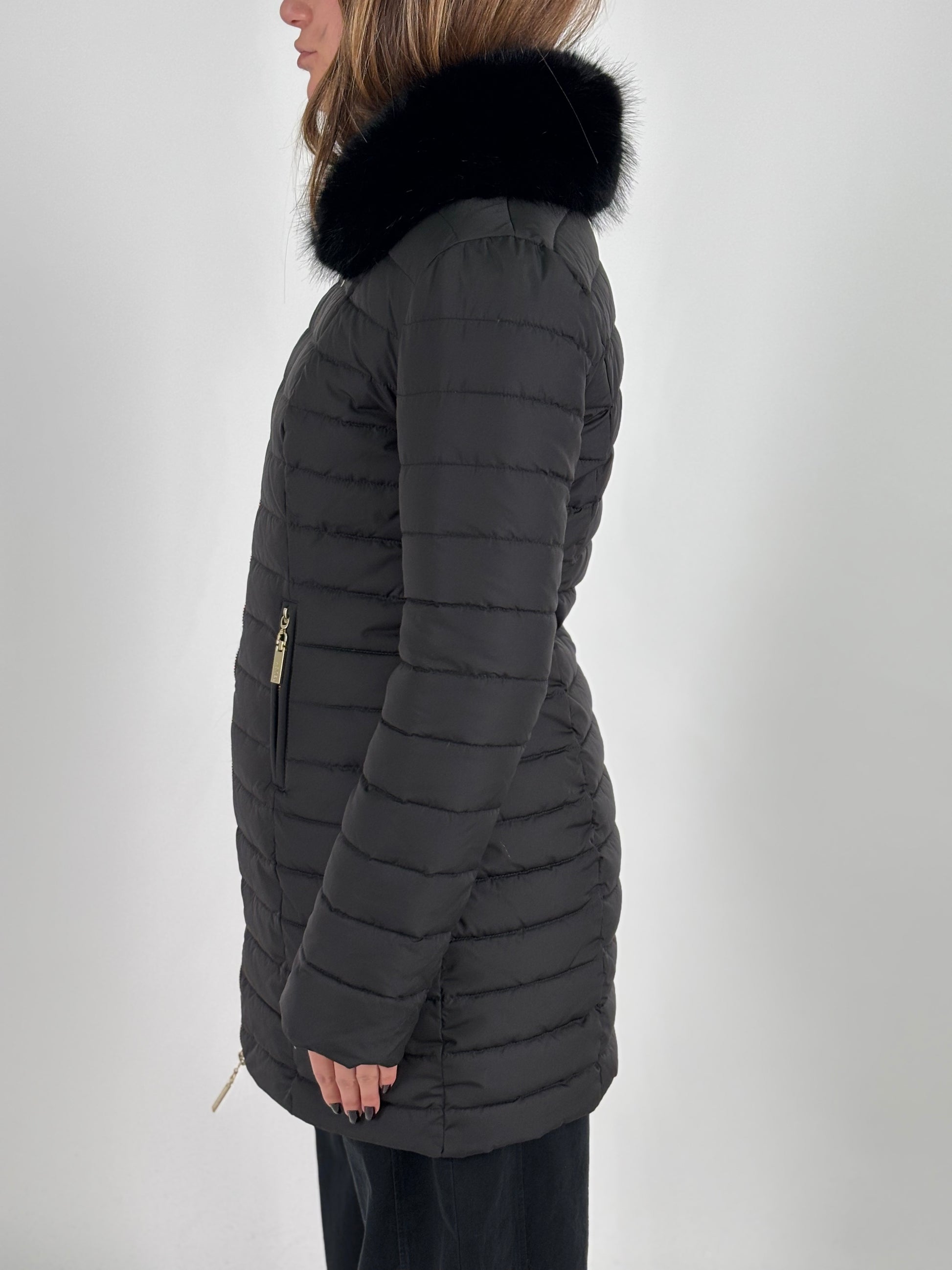Relish Piumino lungo con colletto in ecopelliccia NERO