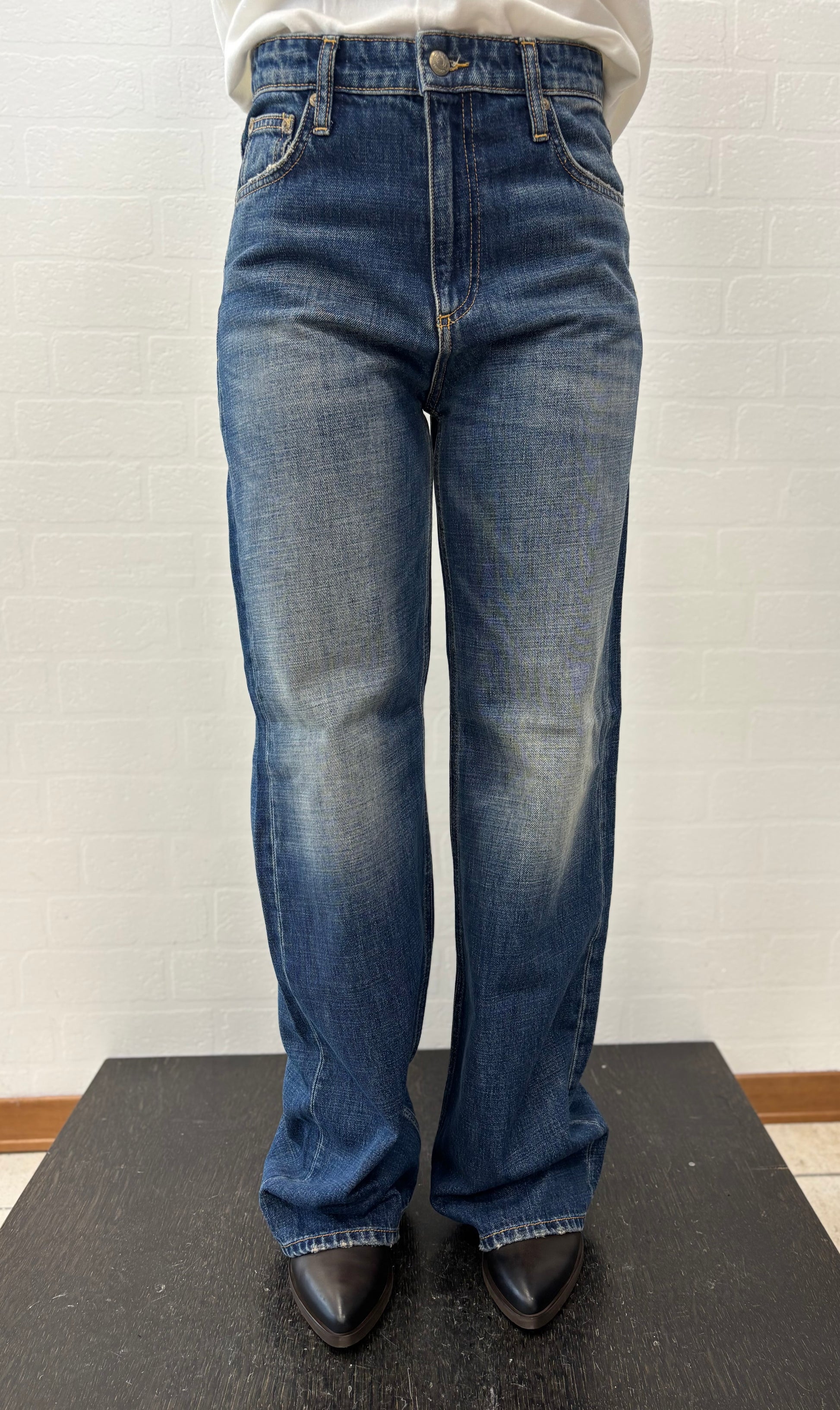 - Roy Roger's Jeans Palazzo Super Wild Old Glory con tasche e orlo effetto used, lavaggio medio, allacciatura ad un bottone più zip