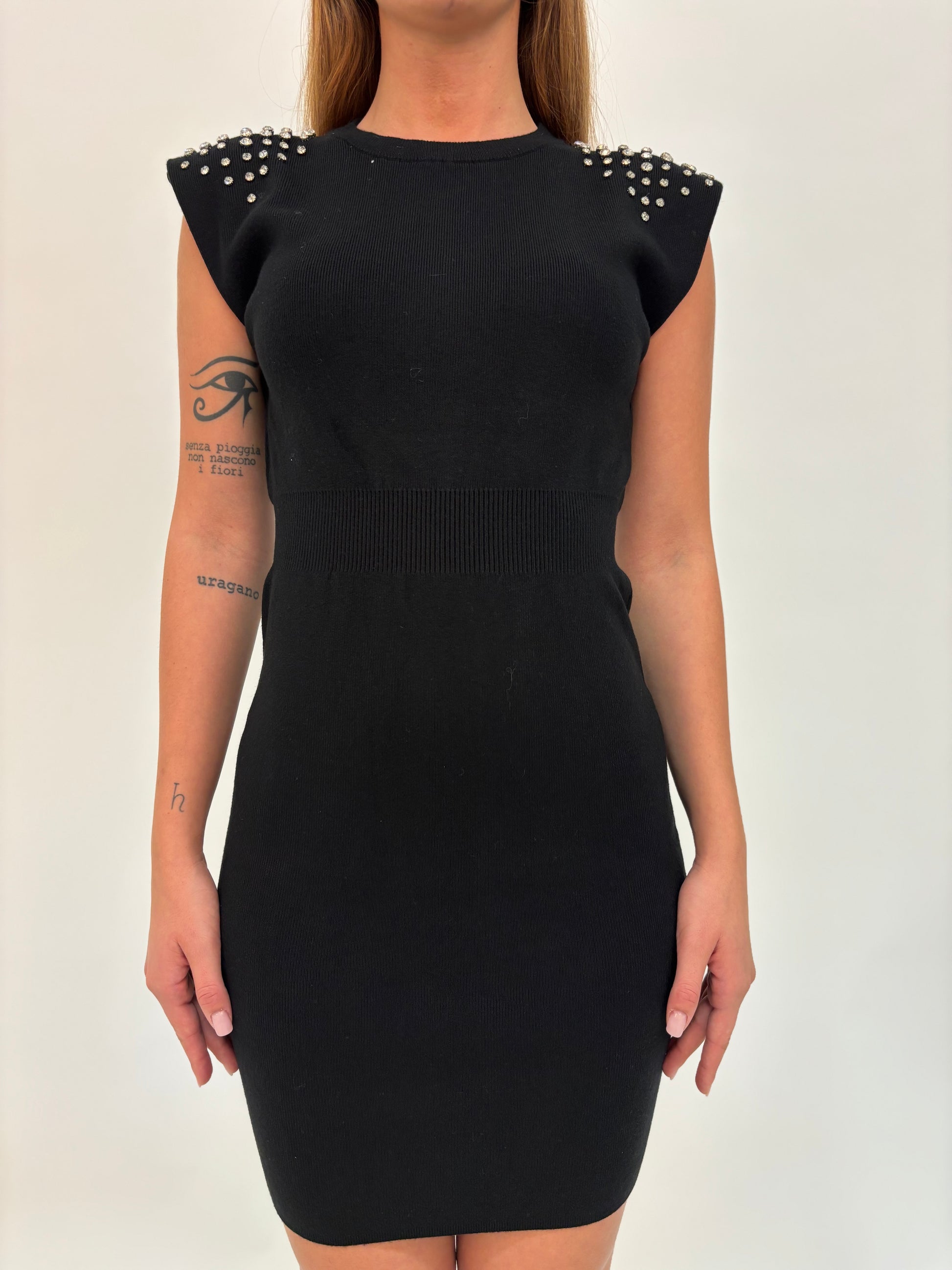 Susy Mix Abito in maglia con strass sulla spalla NERO