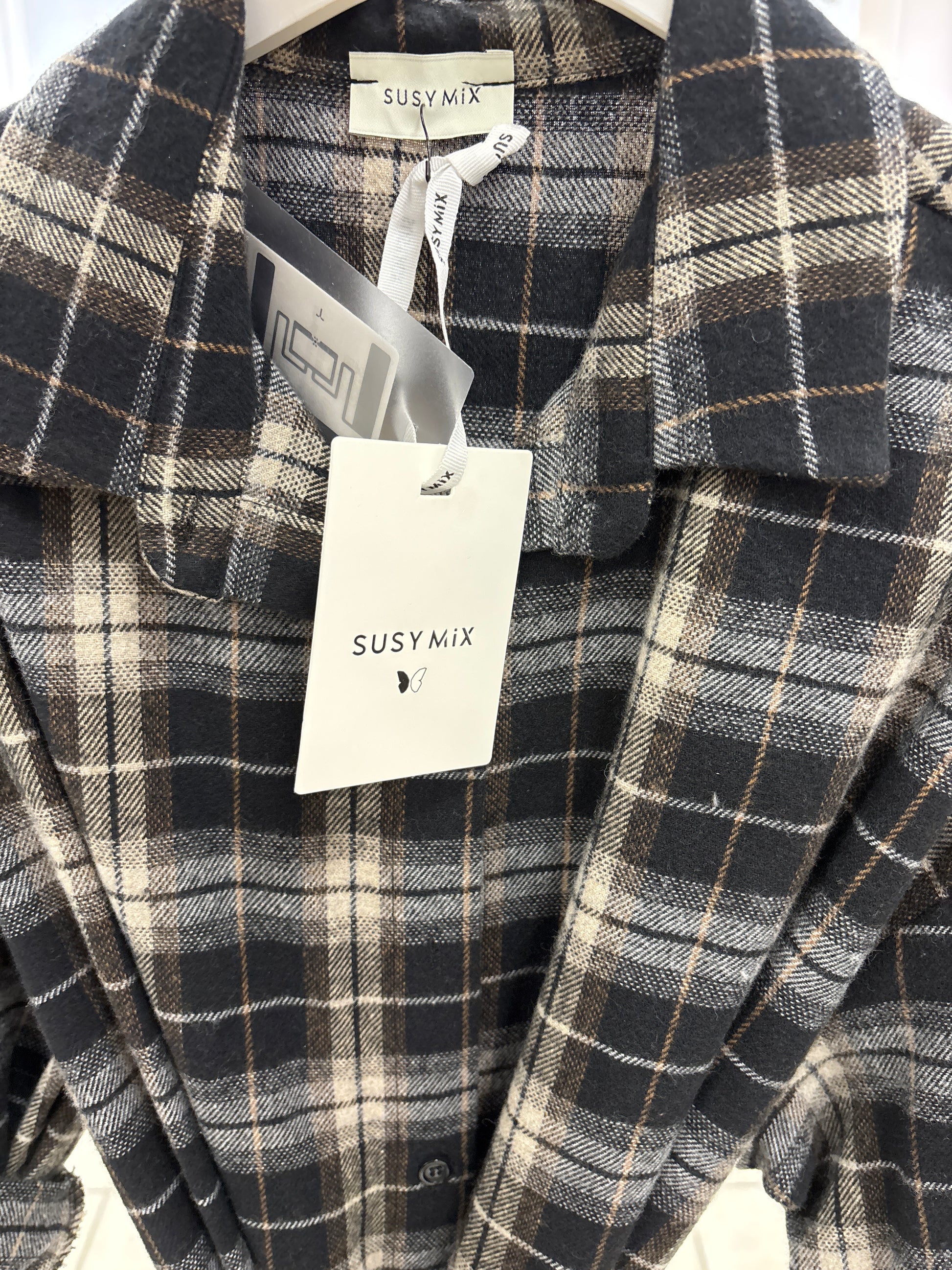 Susy Mix Camicia lunga in flanella a scacchi NERO/BEIGE