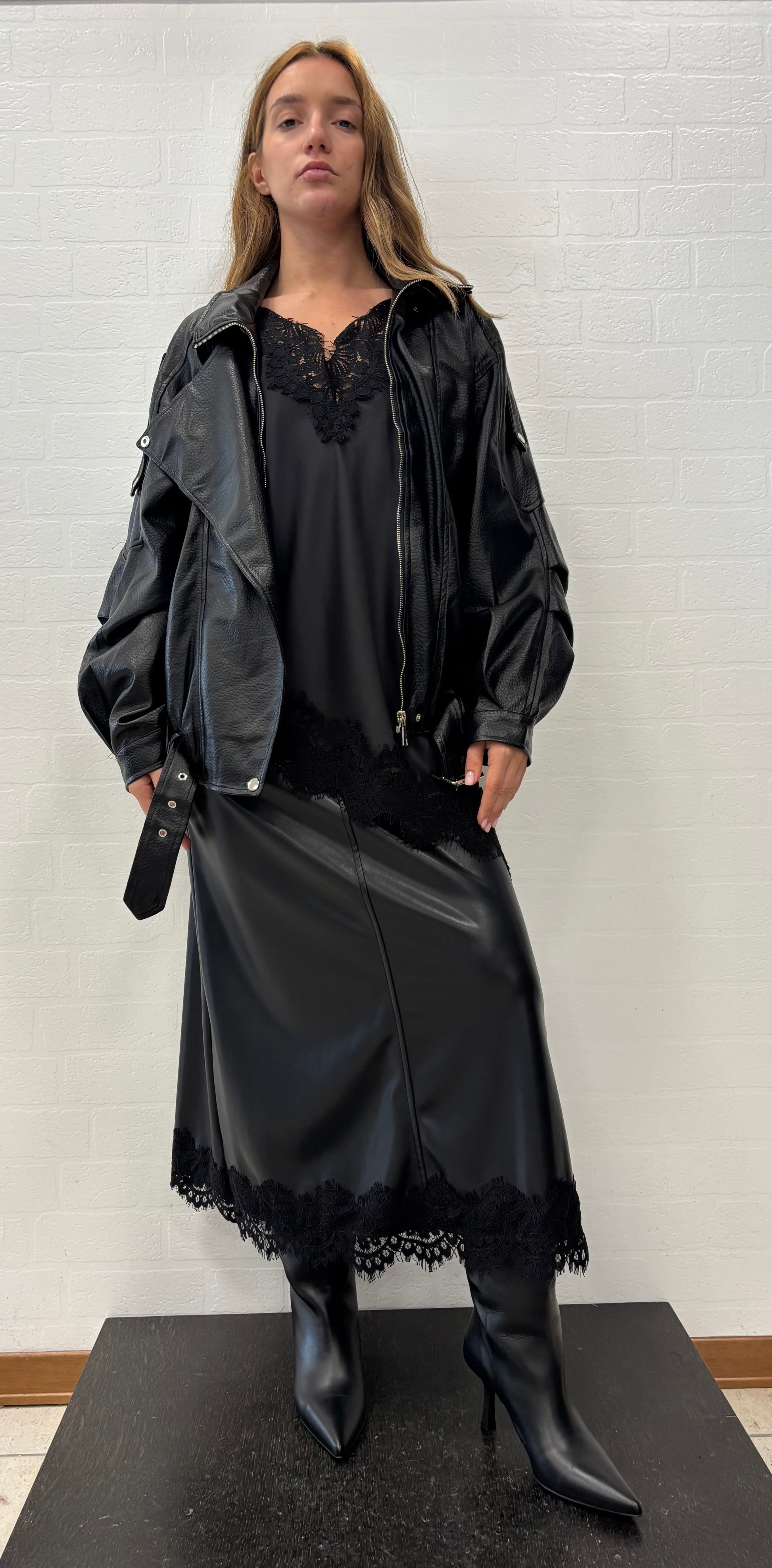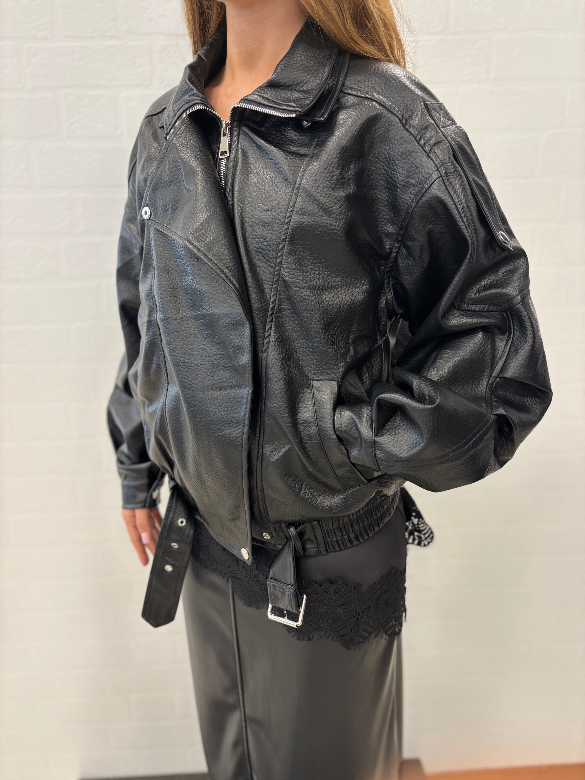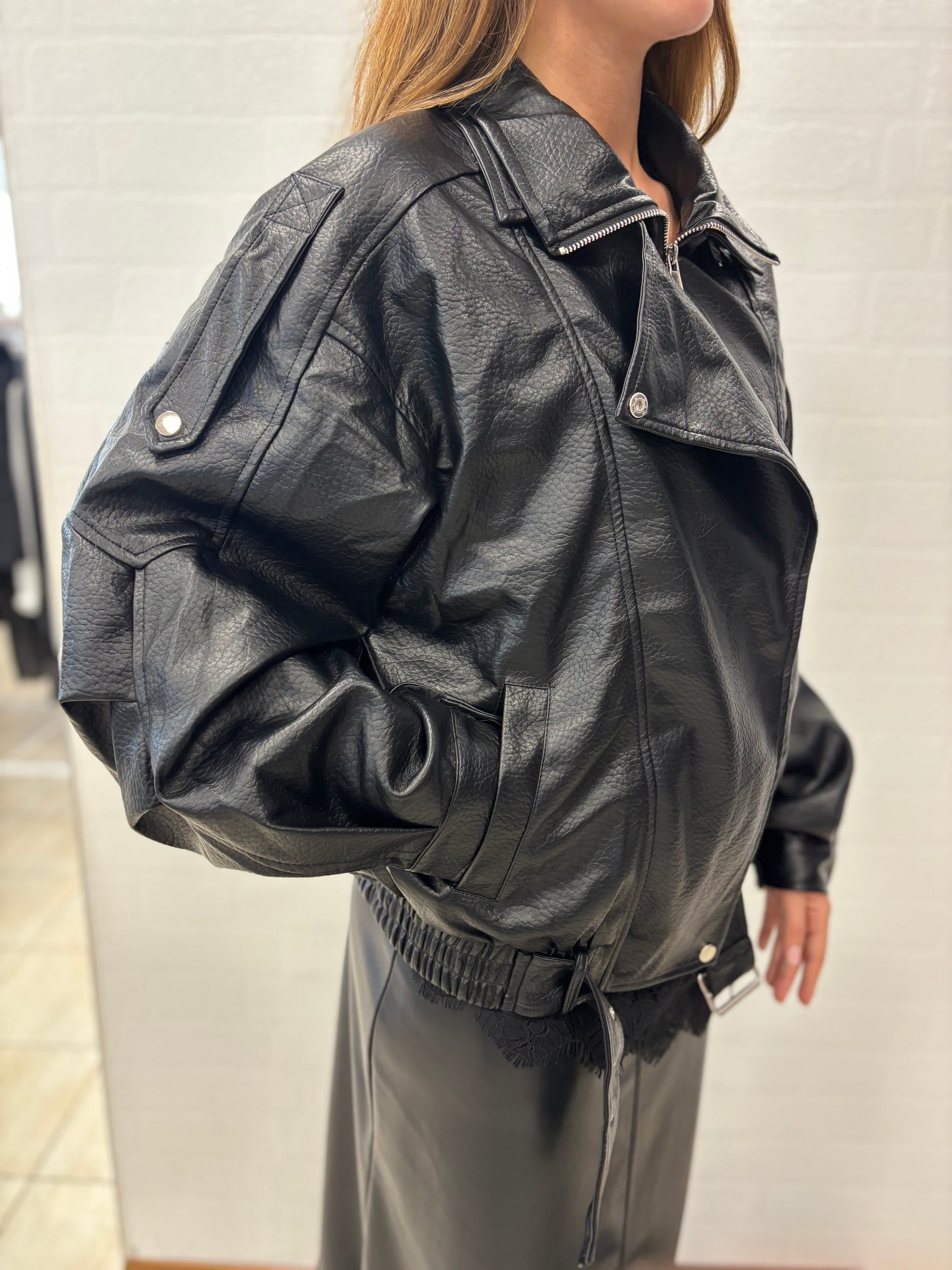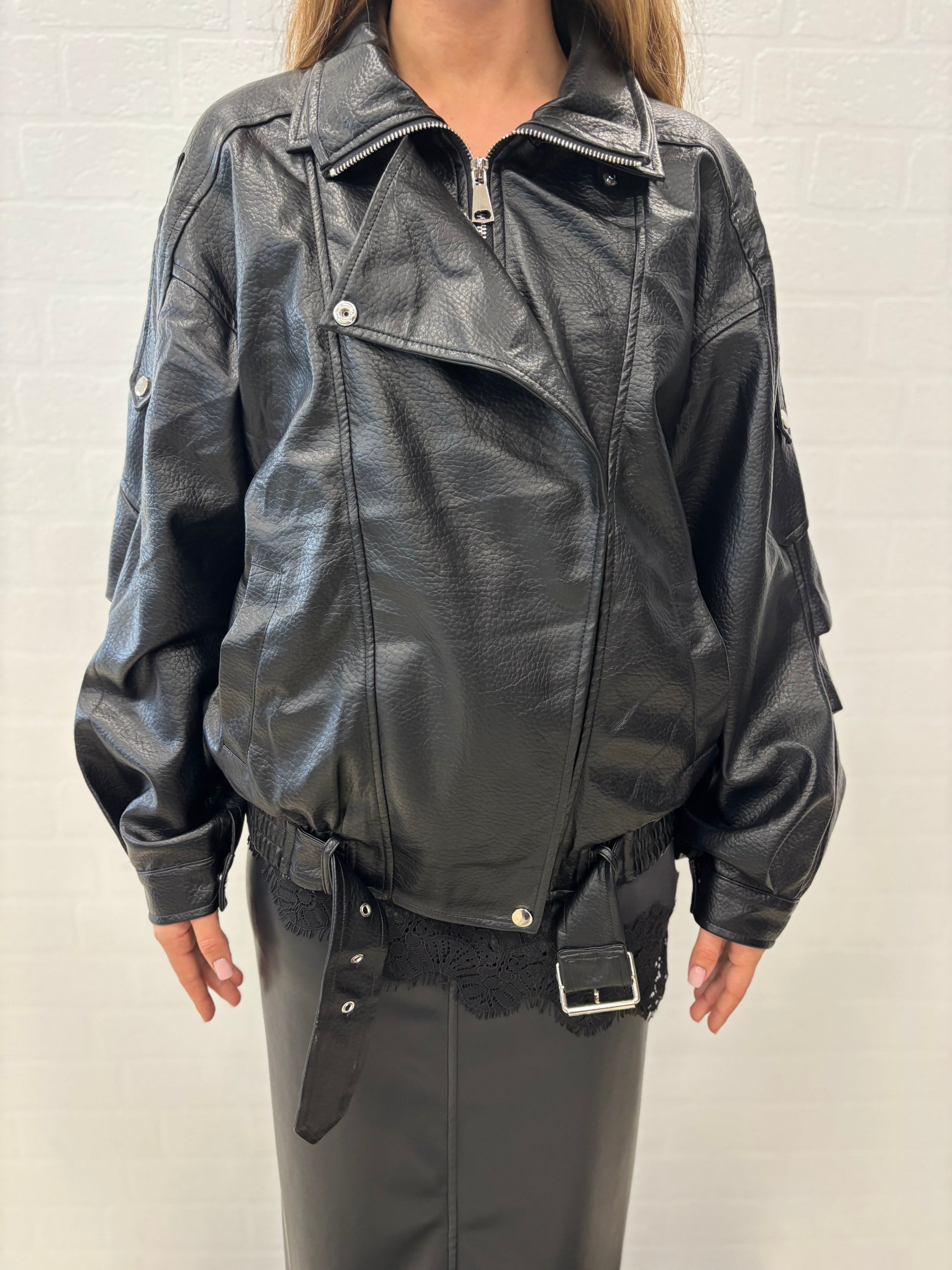 Susy Mix Giubbino chiodo simil pelle over NERO