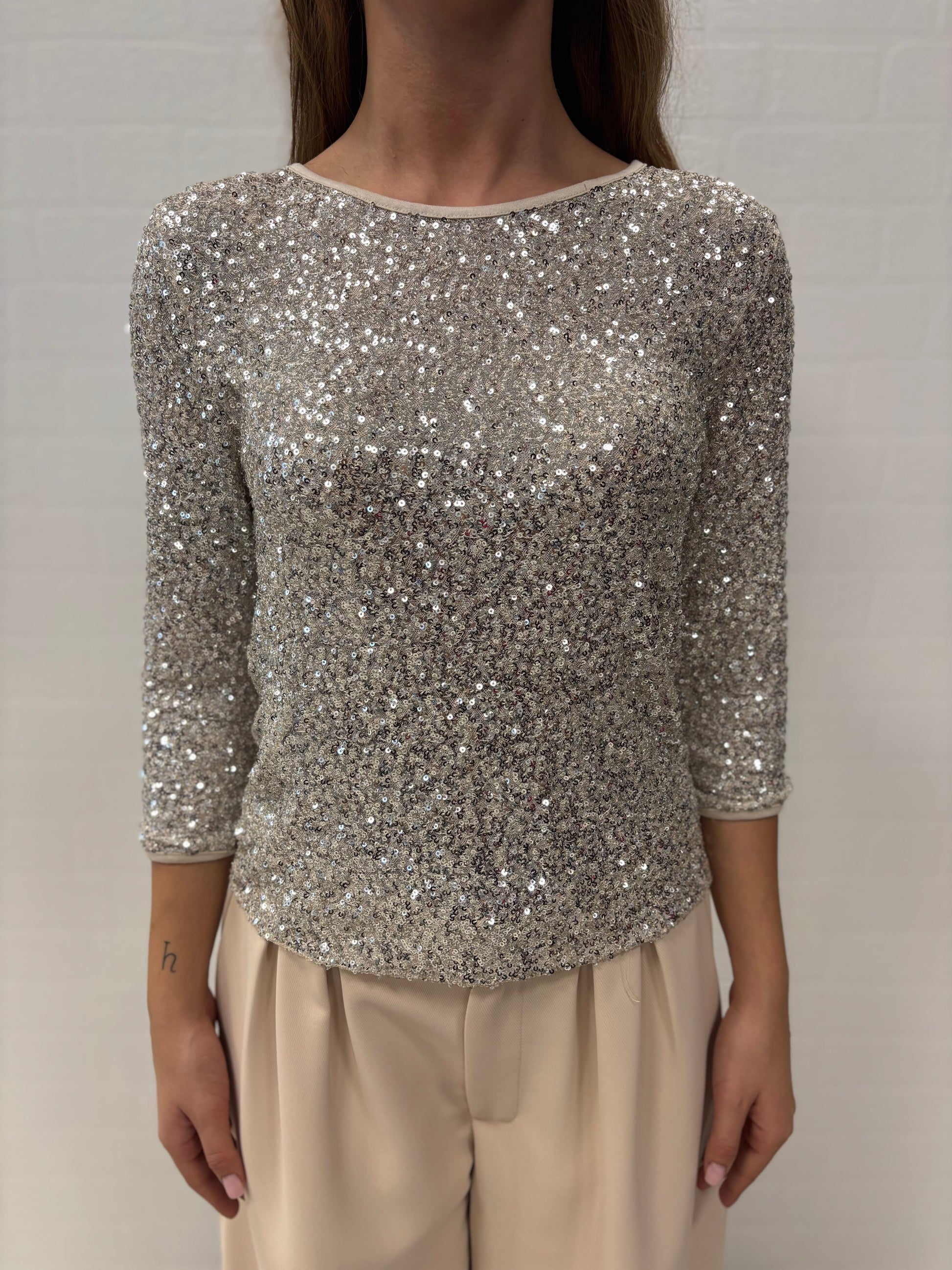 - Susy Mix Maglia in paillettes modello girocollo con manica 3/4, tessuto stretch