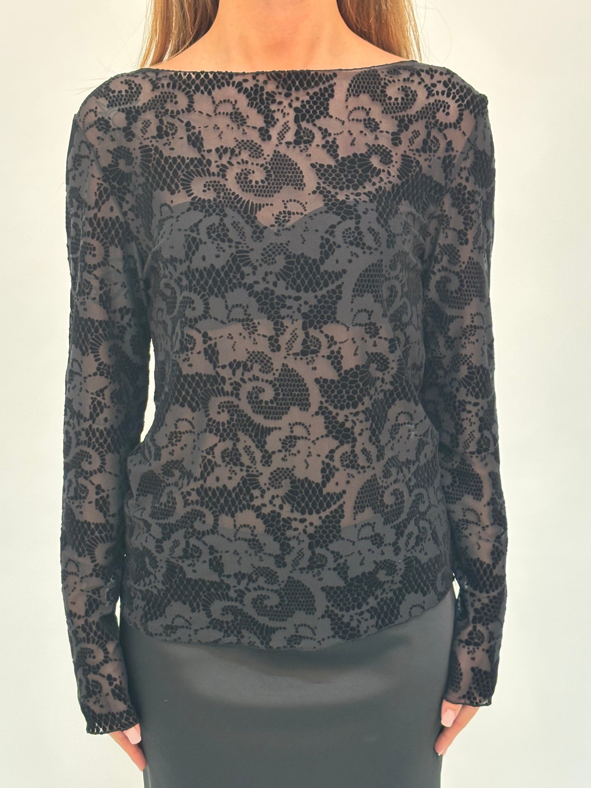 Susy Mix Maglia ml effetto pizzo velluto NERO
