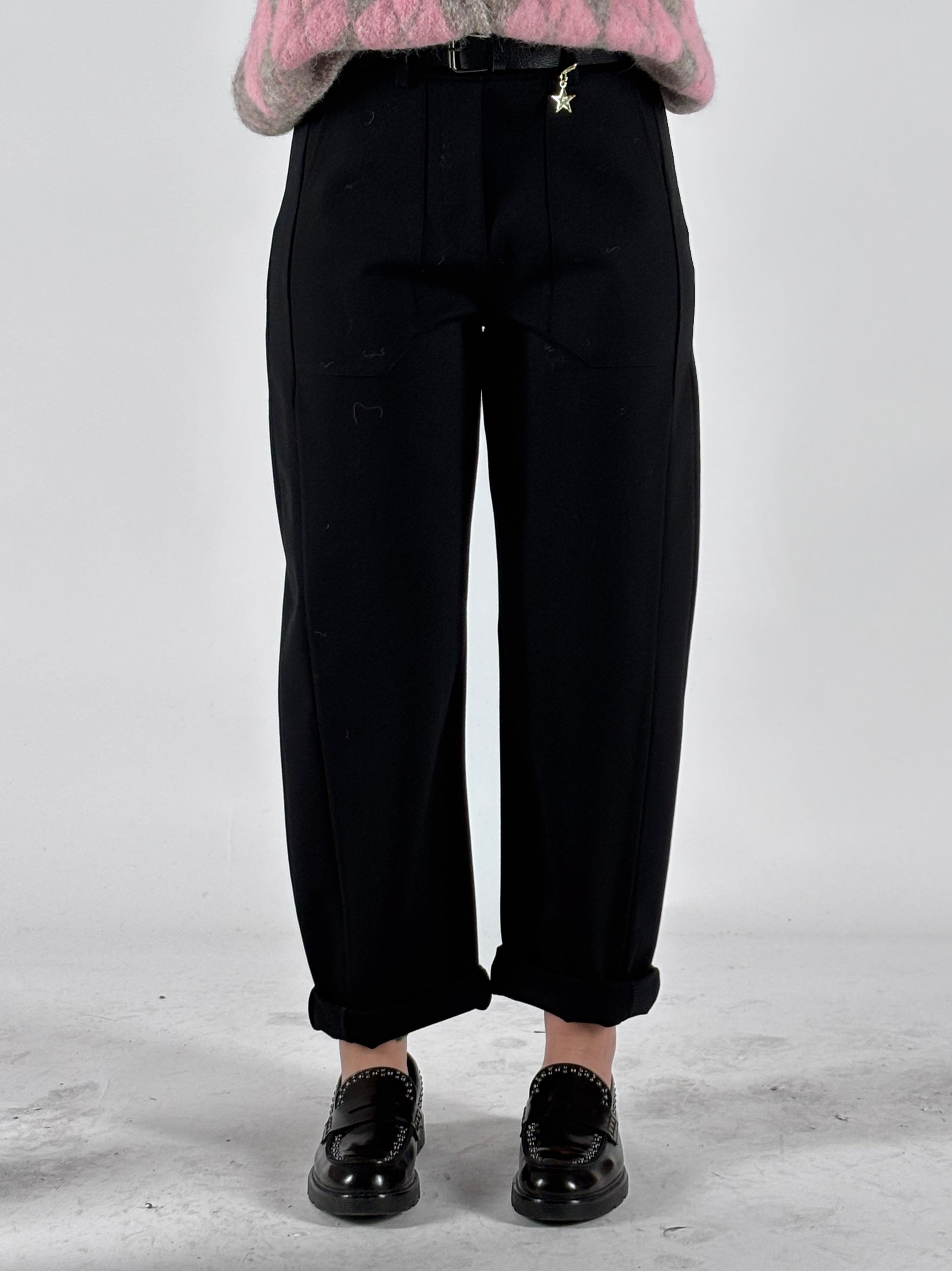 Susy Mix Pantalone ovetto punto milano con cinta NERO