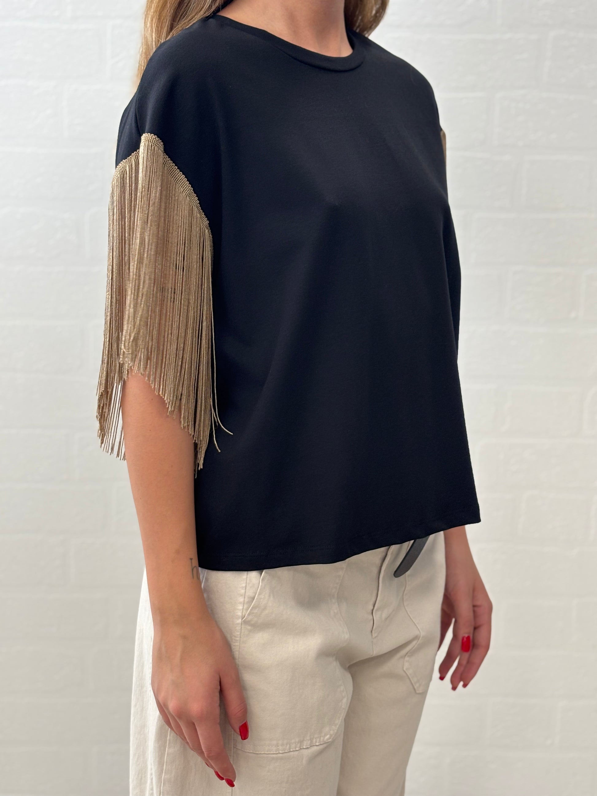 Susy Mix t-shirt mm con frangia beige NERO