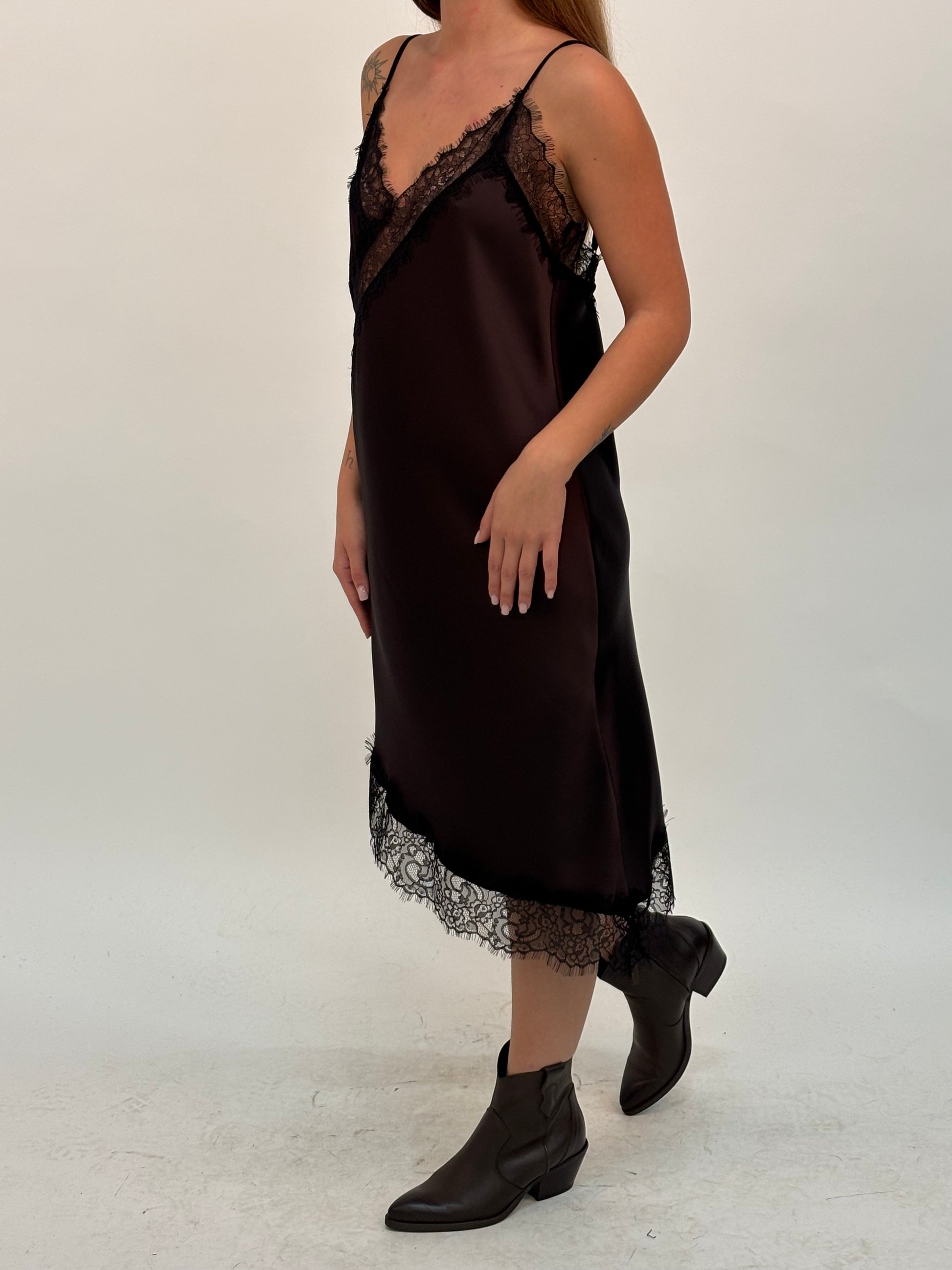 Tensione In Abito asimmetrico in pizzo nero MARRONE