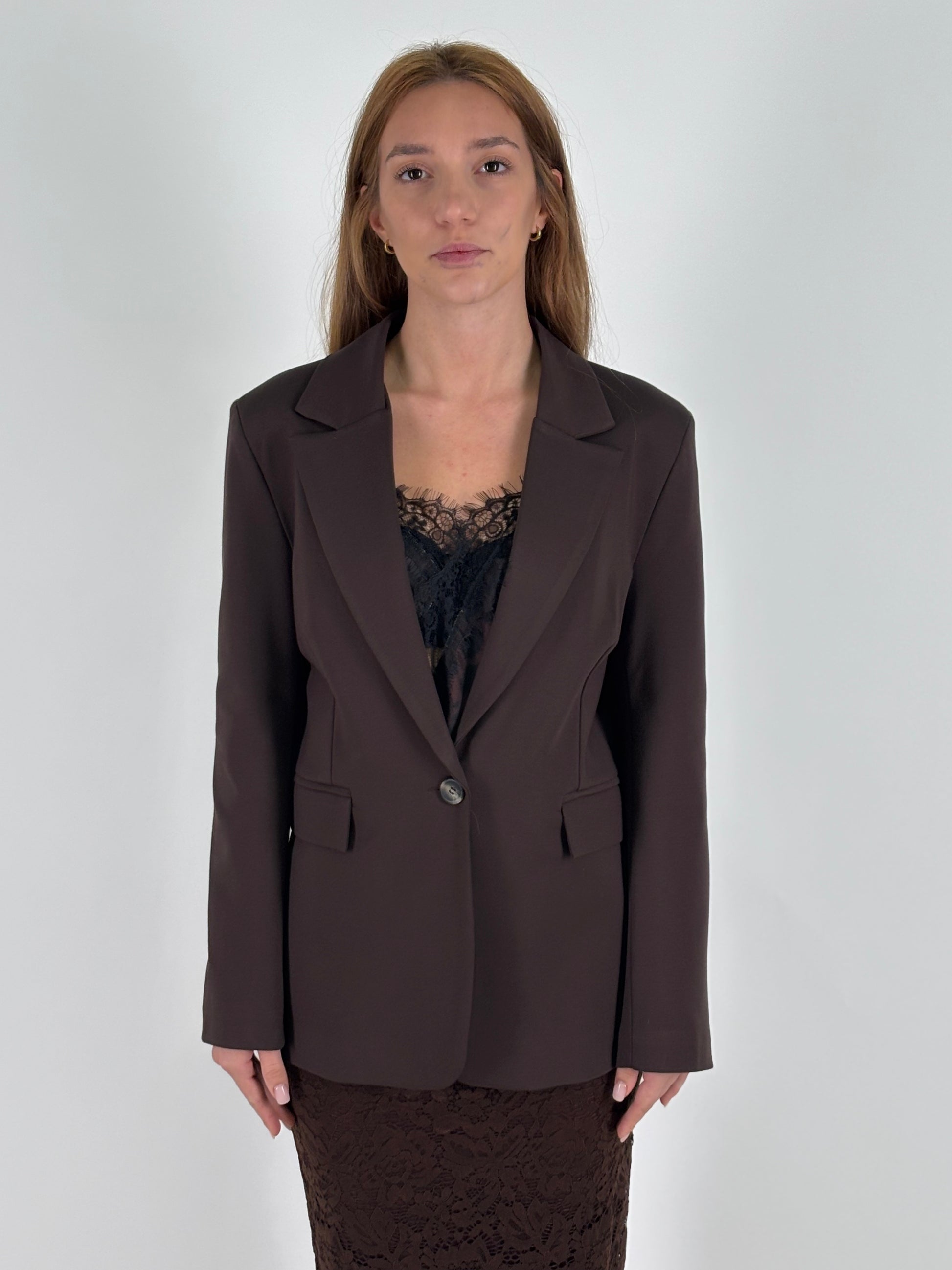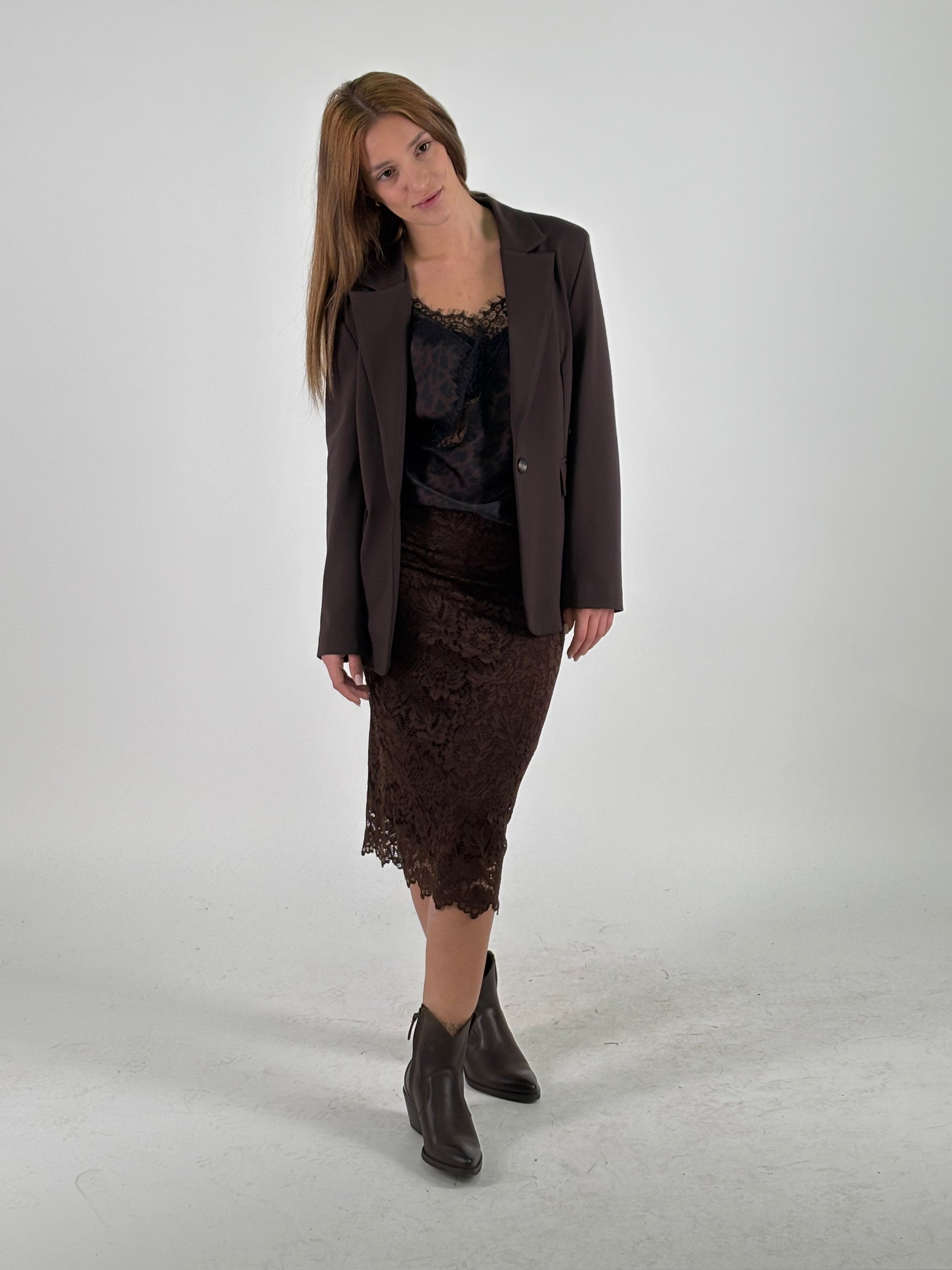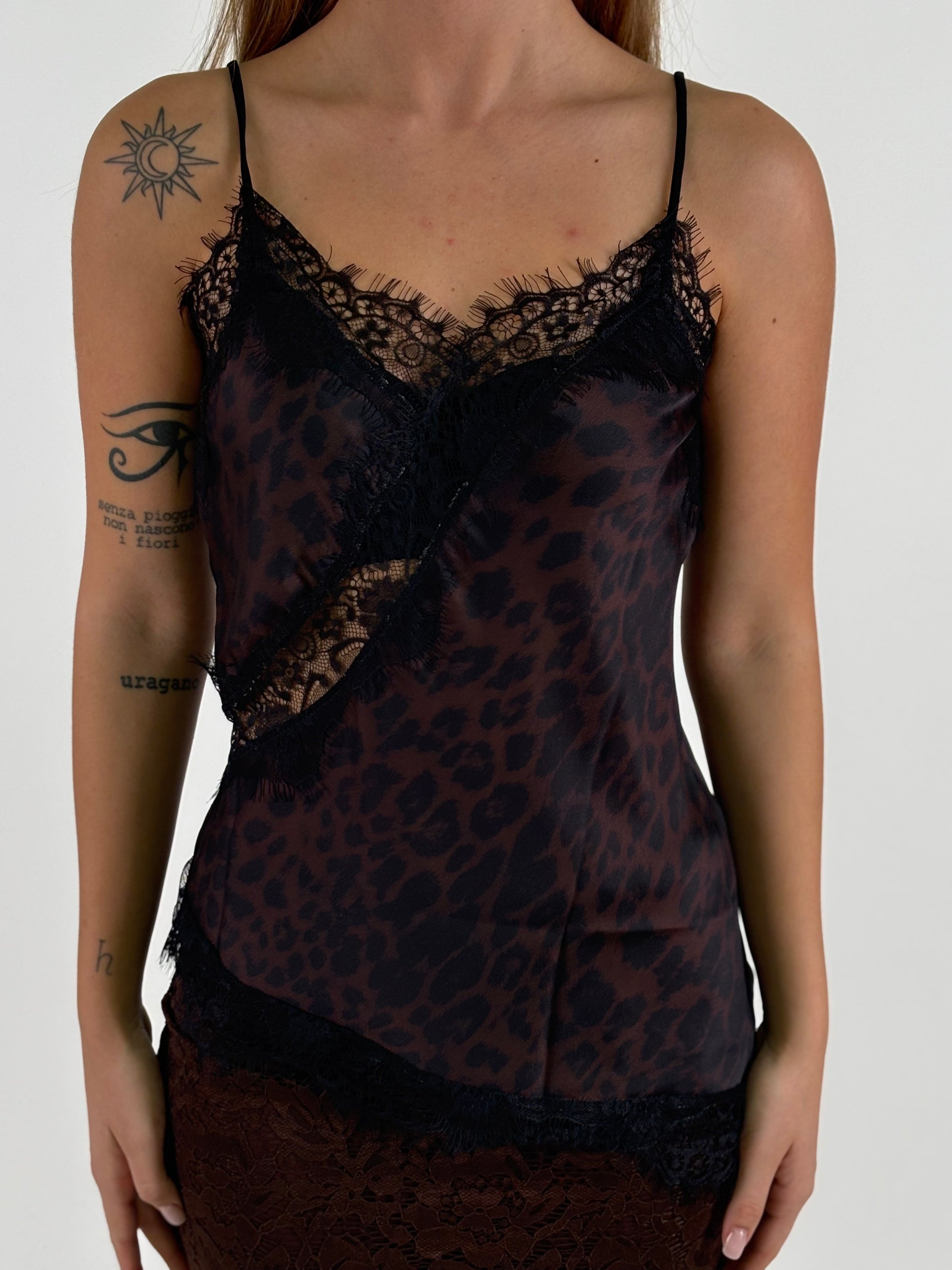 Tensione In Canotta con pizzo nero MARRONE