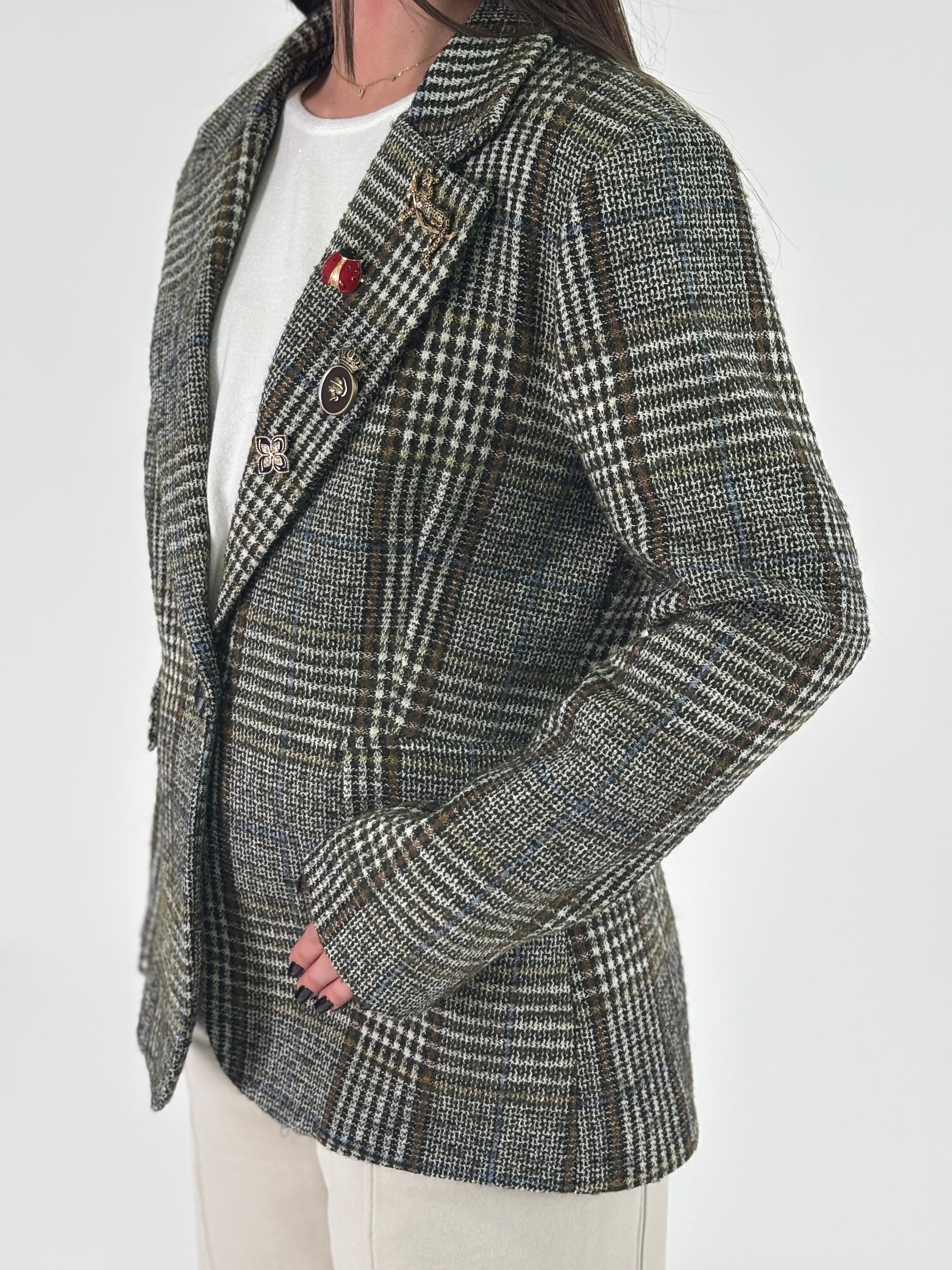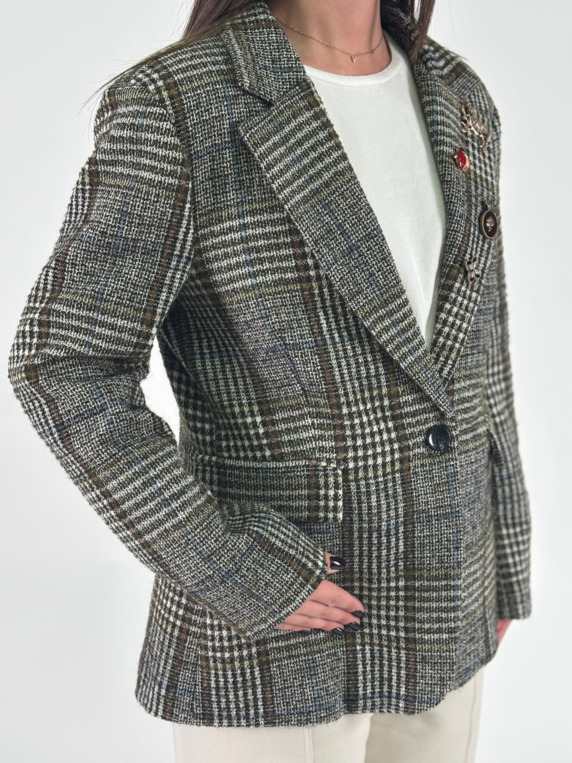 - Tensione In Giacca a scacchi e spill, fodera interna marrone, bottoni al polso, spacchi posteriori, giacca provvista di tasche pattina, vestibilità comoda