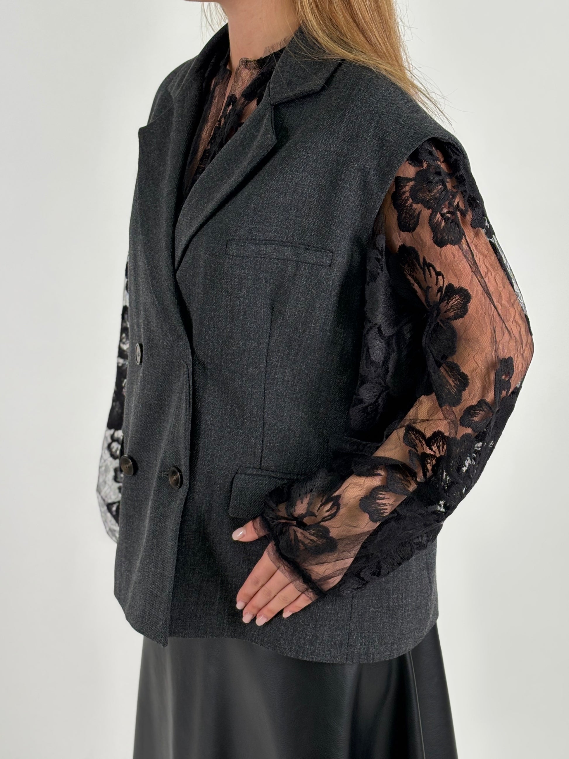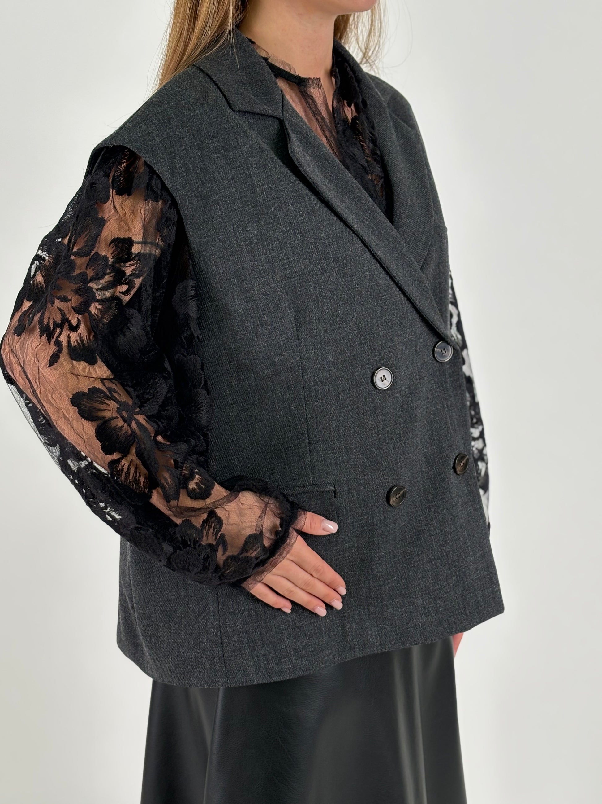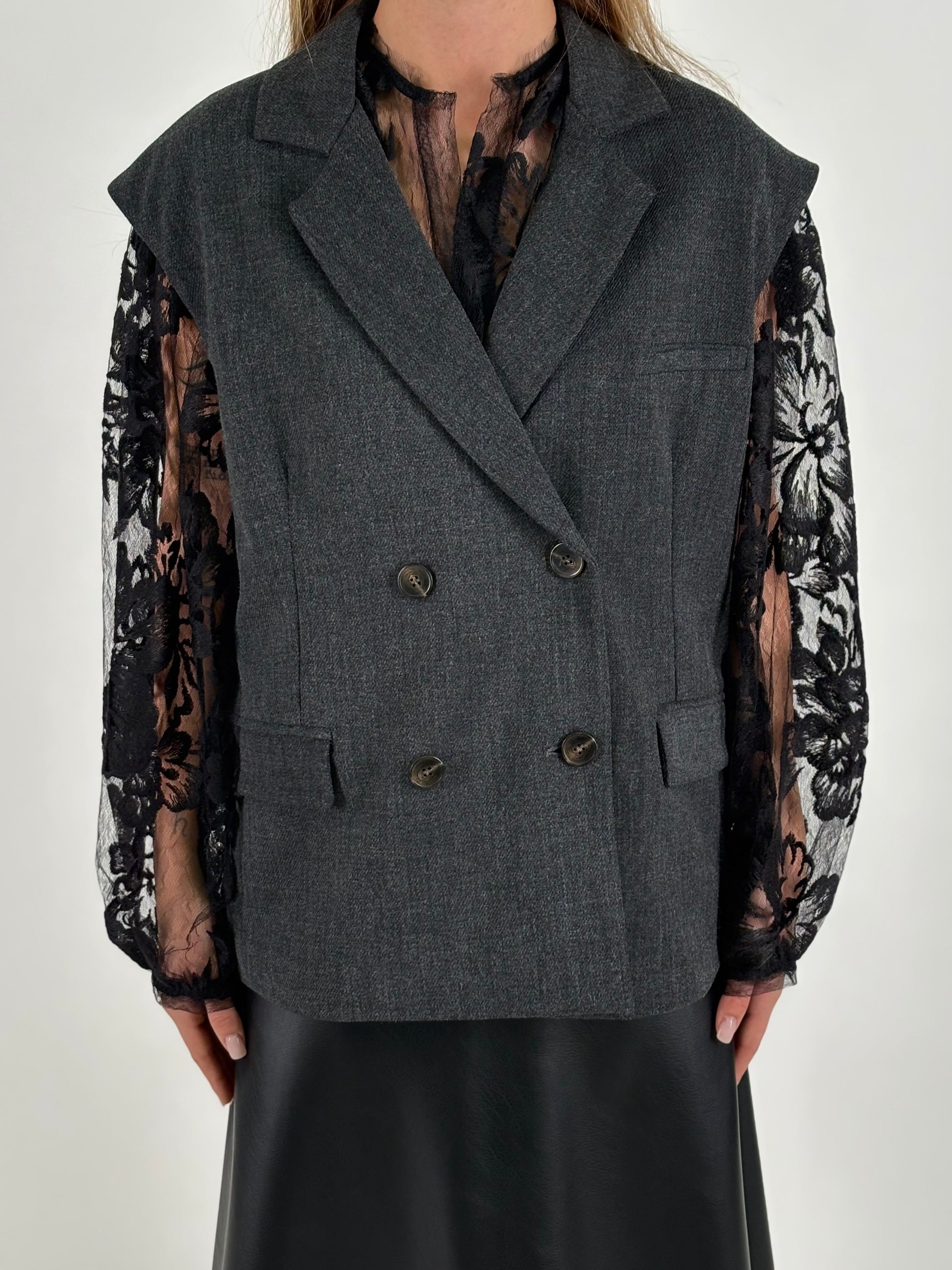 - Tensione In Gilet doppiopetto over con fodera interna grigia