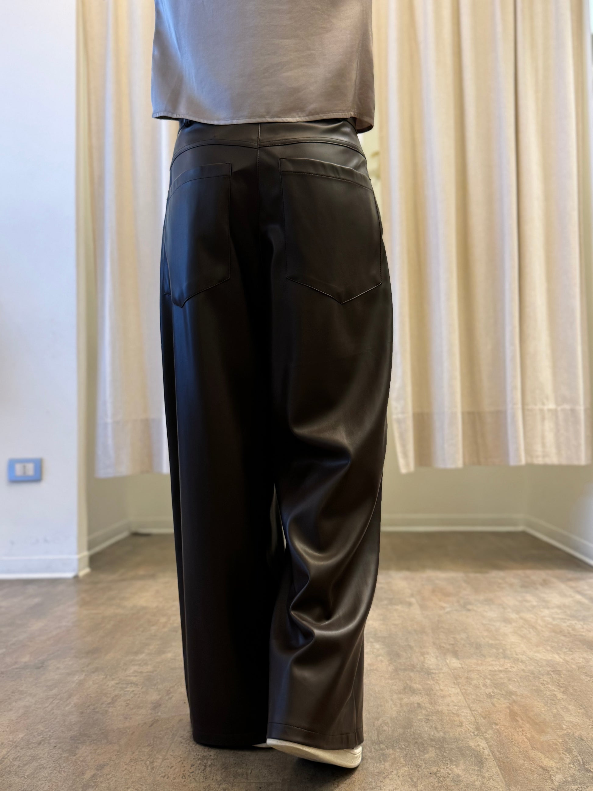 - Tensione In pantalone palazzo in ecopelle provvisto di tasche fronte e retro, allacciatura ad un bottone più zip
